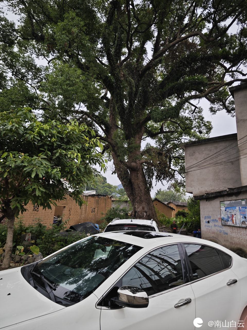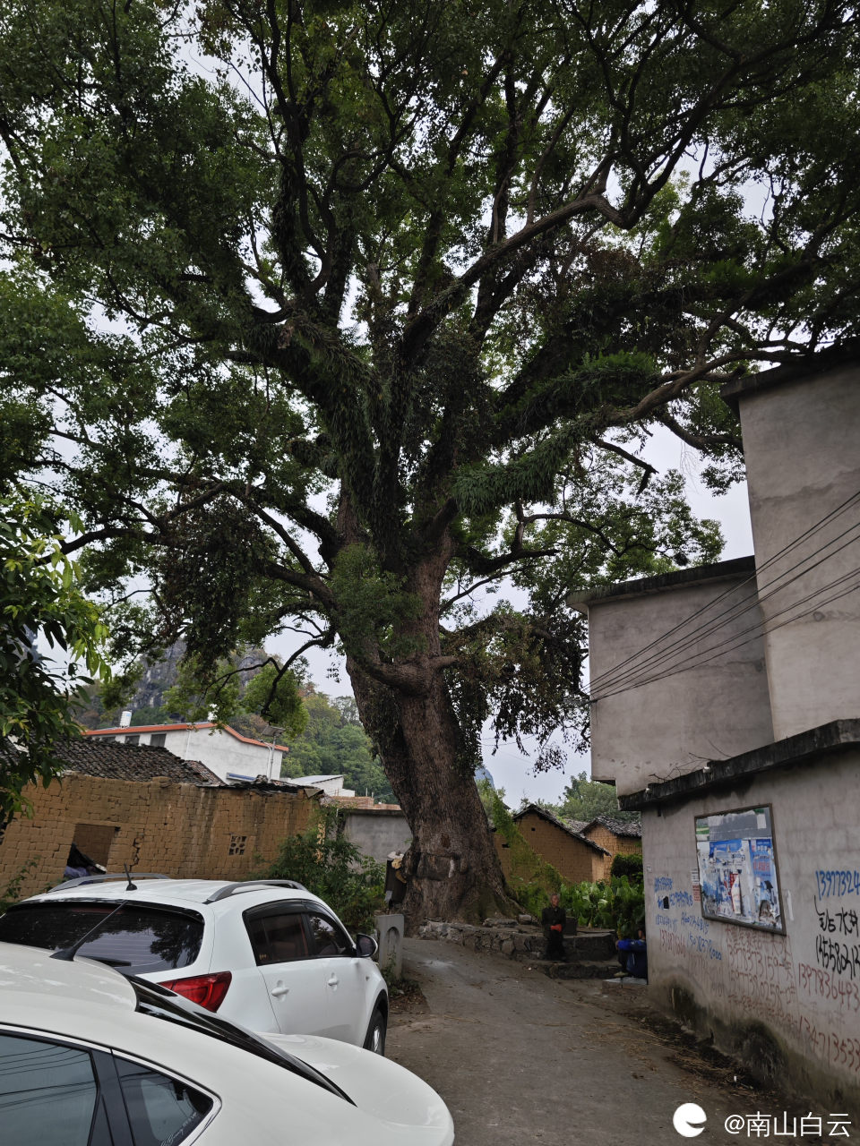 阳朔农村空气真新鲜,村里有一古樟树,高大伟岸,枝叶茂密,有村民在树下聊天。
