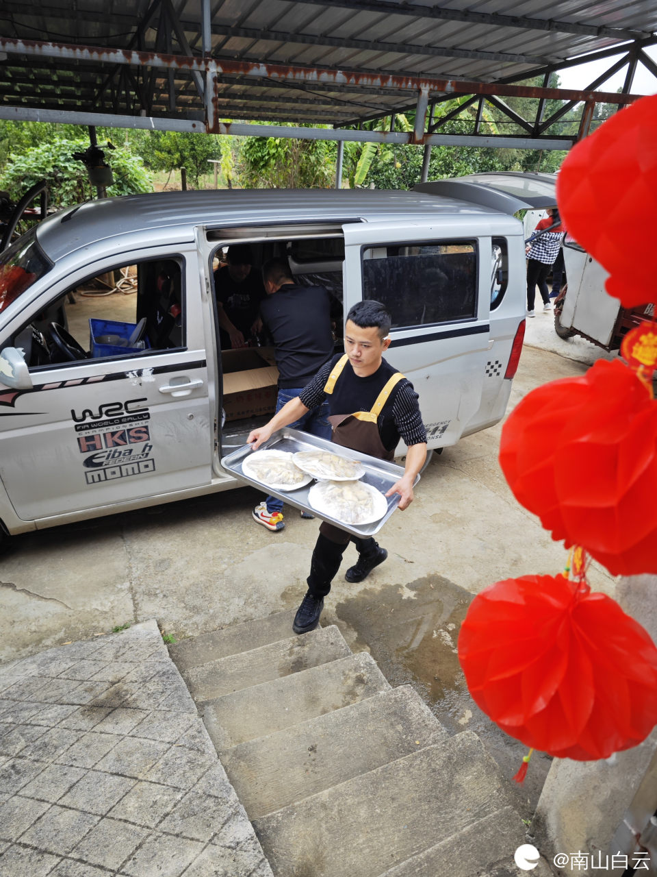 现在农村请酒有的不在家自己做的,叫饭店准备。这样省事省力,给钱就行了。刚到老表家,饭店餐车已到。不过感觉缺少了过去的氛围。