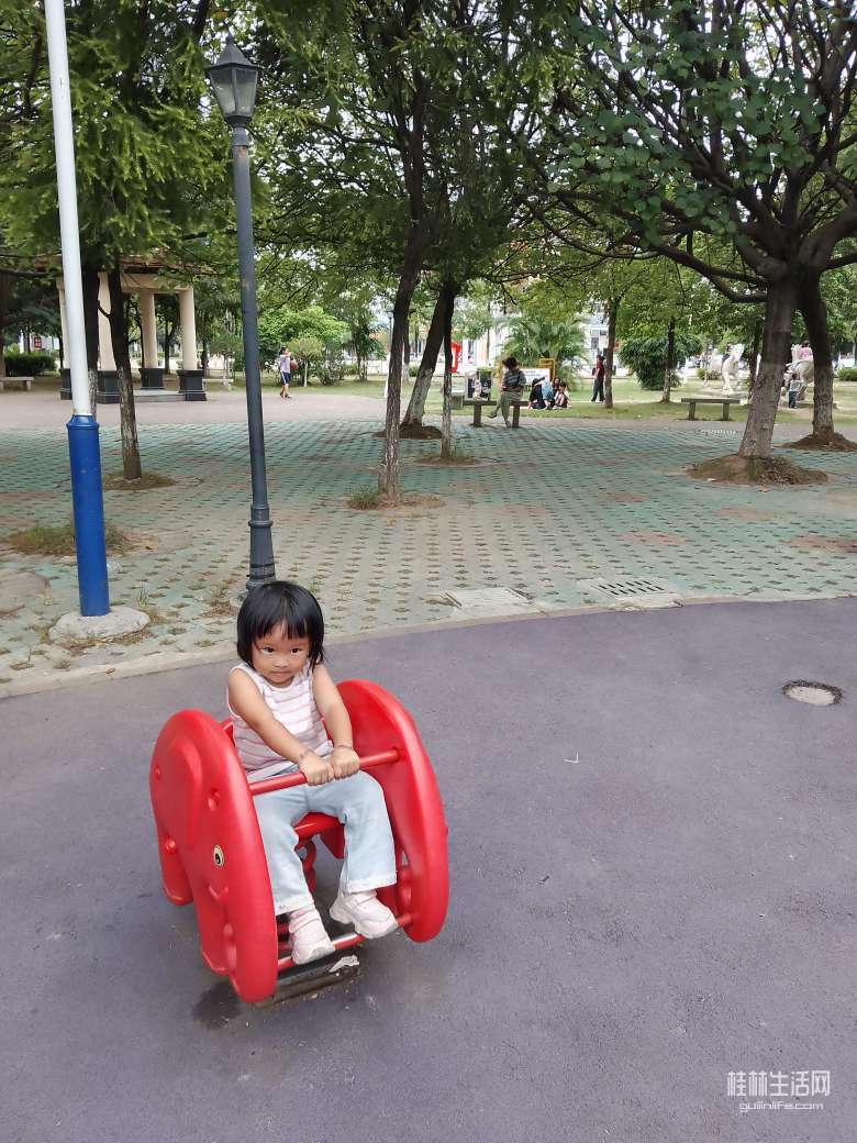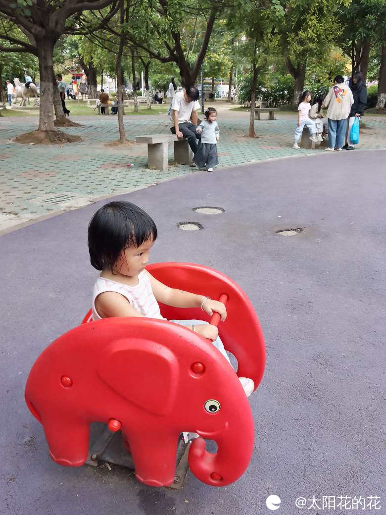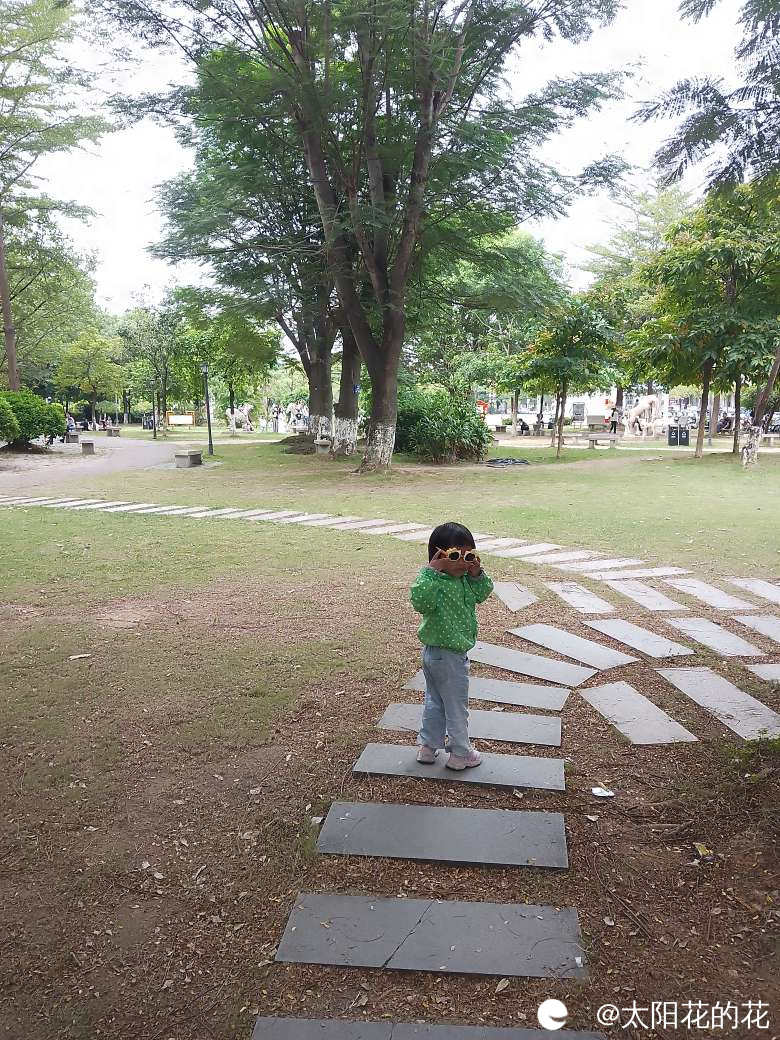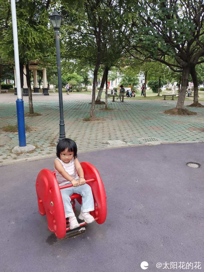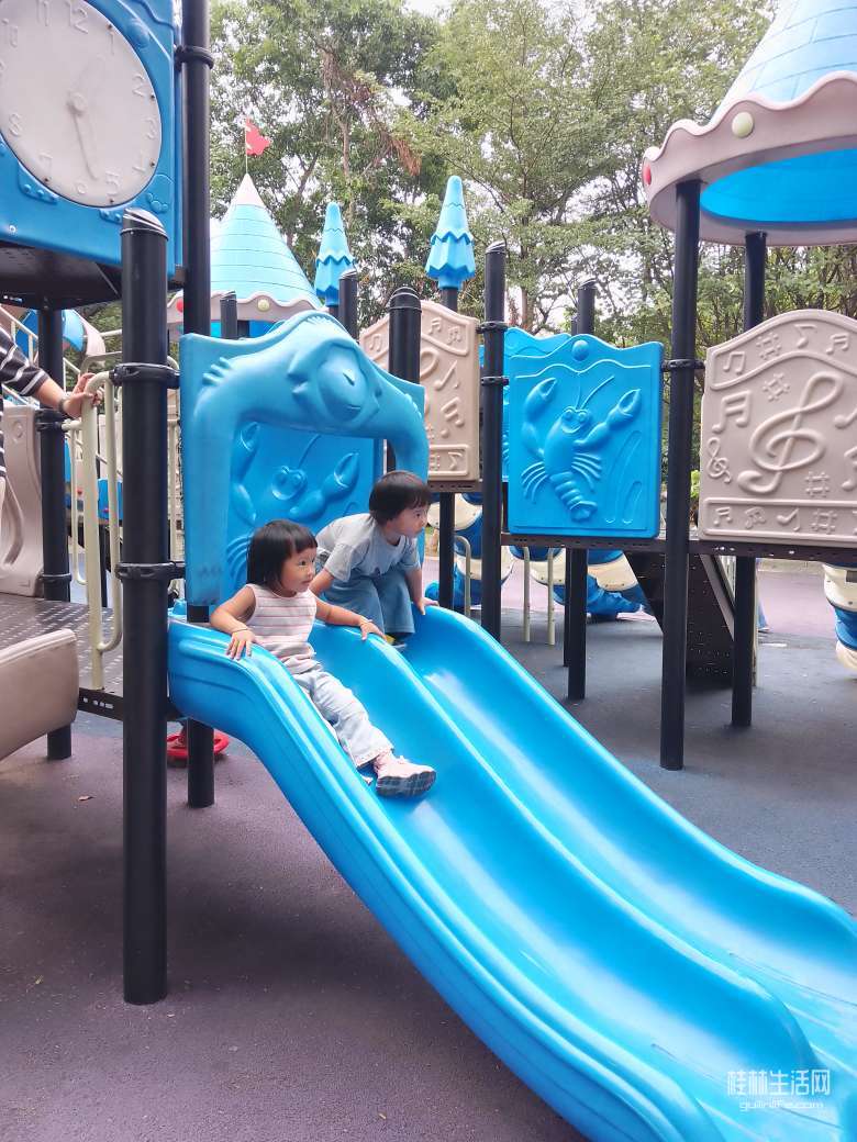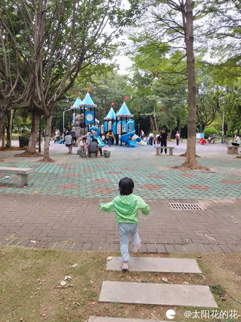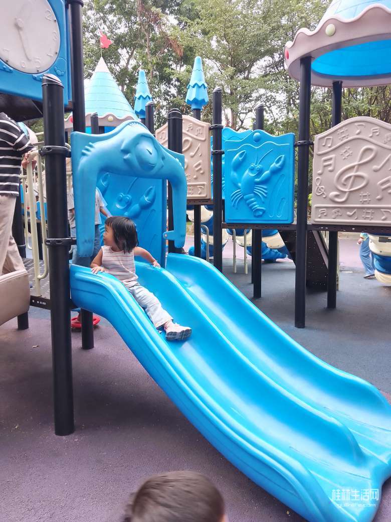 今天没有出太阳,所以带小朋友来公园玩滑滑梯……