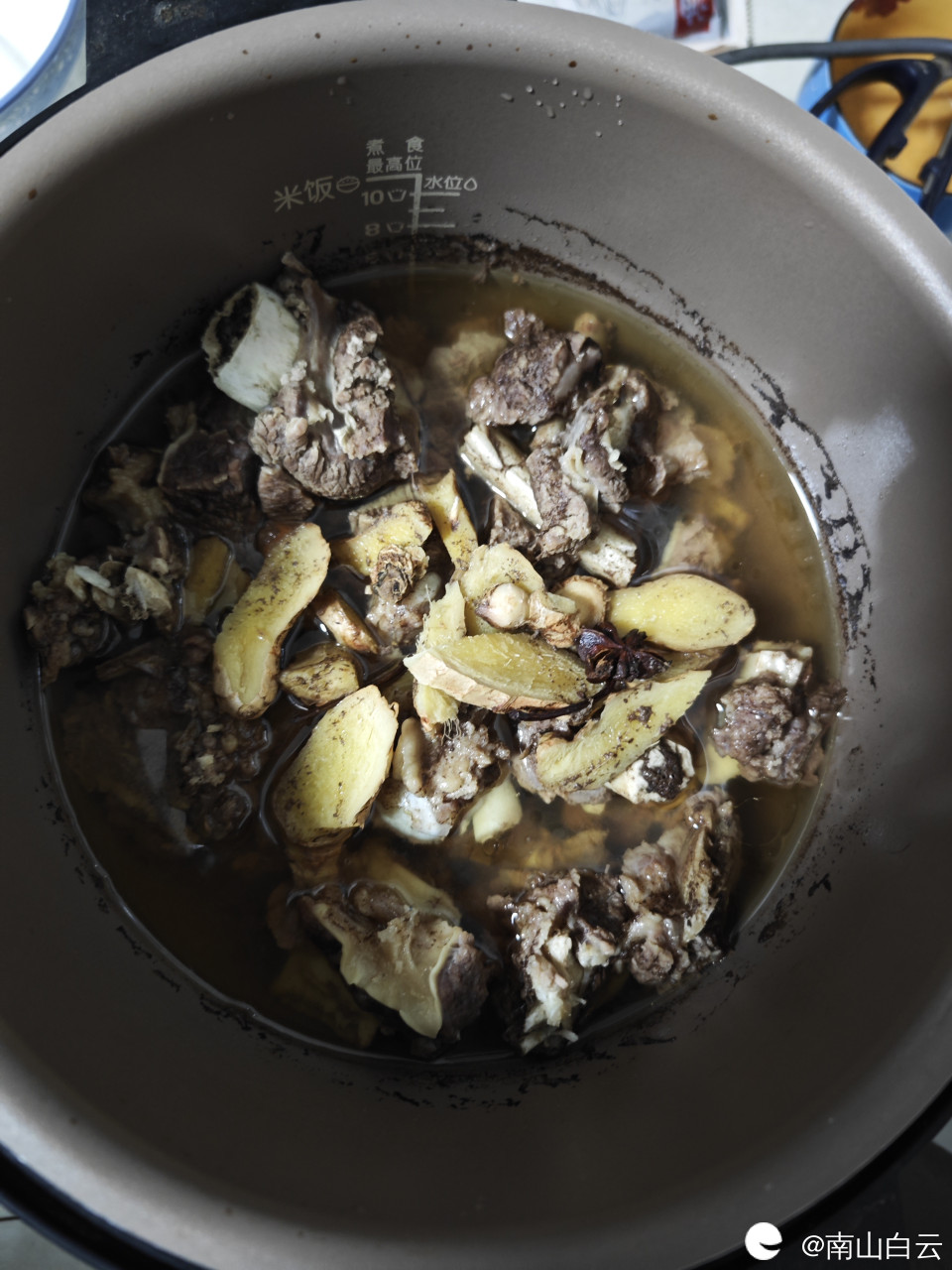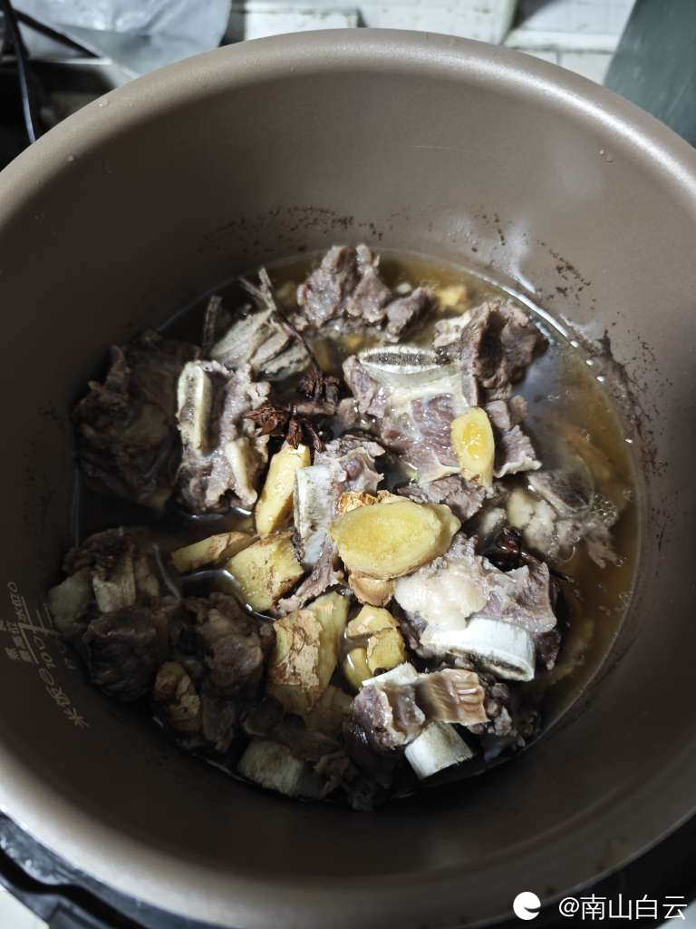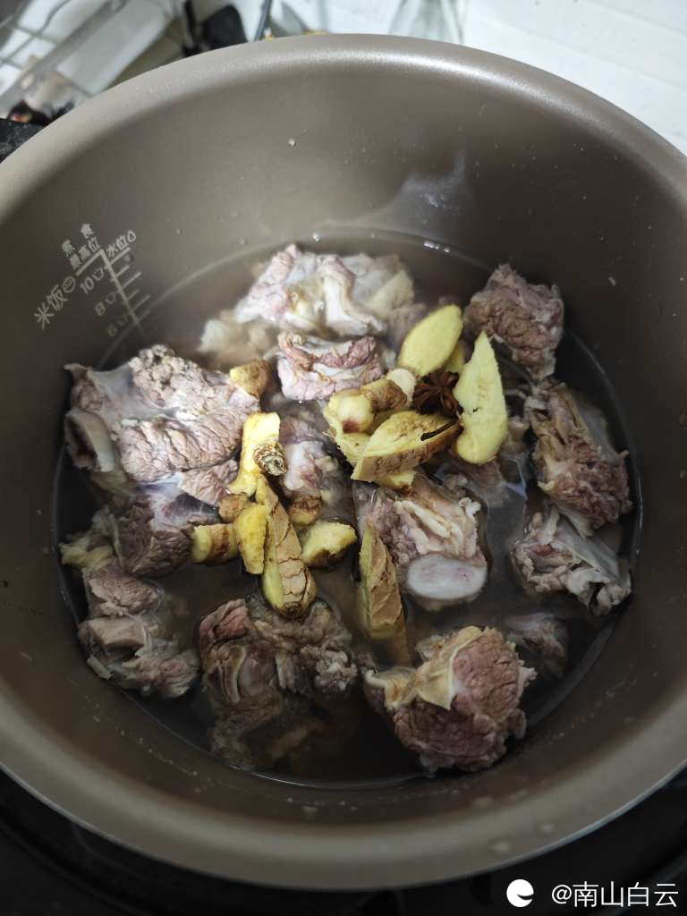 然后放入高压锅里,放1升山泉水炖。