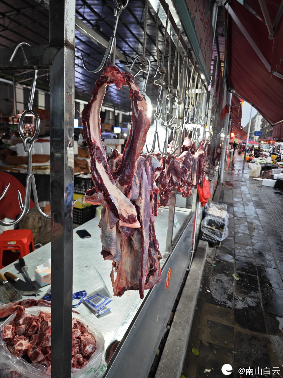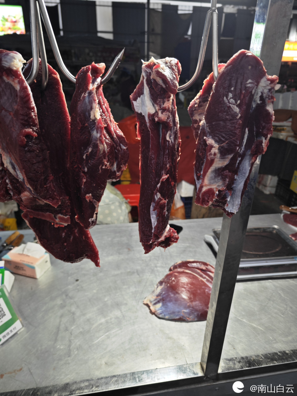 菜市场有好几摊牛排店,店名基本上都是两江黄牛铺,价格实惠,今天牛排23元一斤,我买了68元。临桂两江牛肉很有名,牛肉鲜嫩味美。当年桂系李宗仁,白崇禧叱咤风云,牛气冲天,与两江牛肉美味多少有些关系。