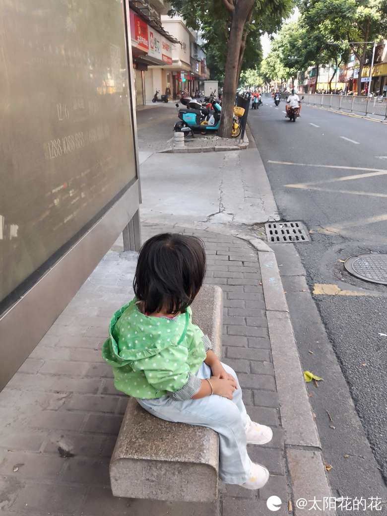 小朋友走累了找个地方歇歇脚……