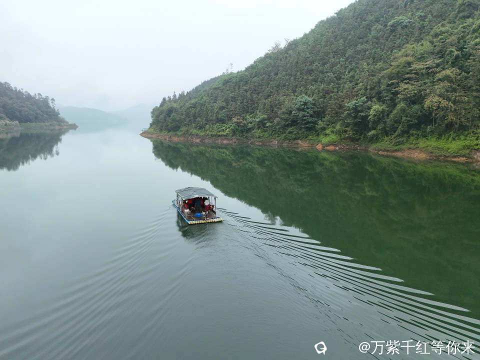 青山如屏,碧水如镜,芦苇如纱。我们乘船向湖中芦苇深处驶入,视野豁然开阔;成片的芦苇丛愈发浓密,船头碰到芦苇杆,细碎的绒絮便随风飘散,落在肩头、或落在船板上;与湖面粼粼波光相映成趣,船行其间,仿佛闯入一片隔绝尘嚣的秘境。