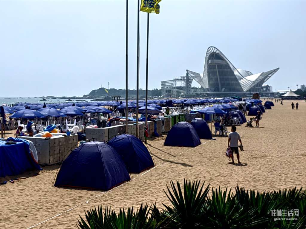 青岛的海滨浴场有好几处,我驱车去了两处浴场,游泳玩沙的人很多,青岛人休闲喜欢在沙滩上扎帐,野餐,密集的帐棚形成别样风景,海滩边小吃和卖纪念品的摊位很多,商味也浓些