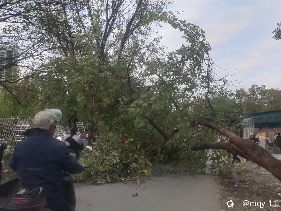 大树估计昨晚上被大风吹倒的。看来大风天气还是需要多注意安全哦。