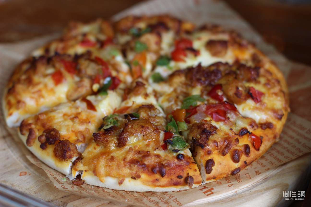 主食上来了:披萨,口味随机,烤得酥软酥软,炒鸡好吃,真的!真的!!真的!!!喵喵喵~