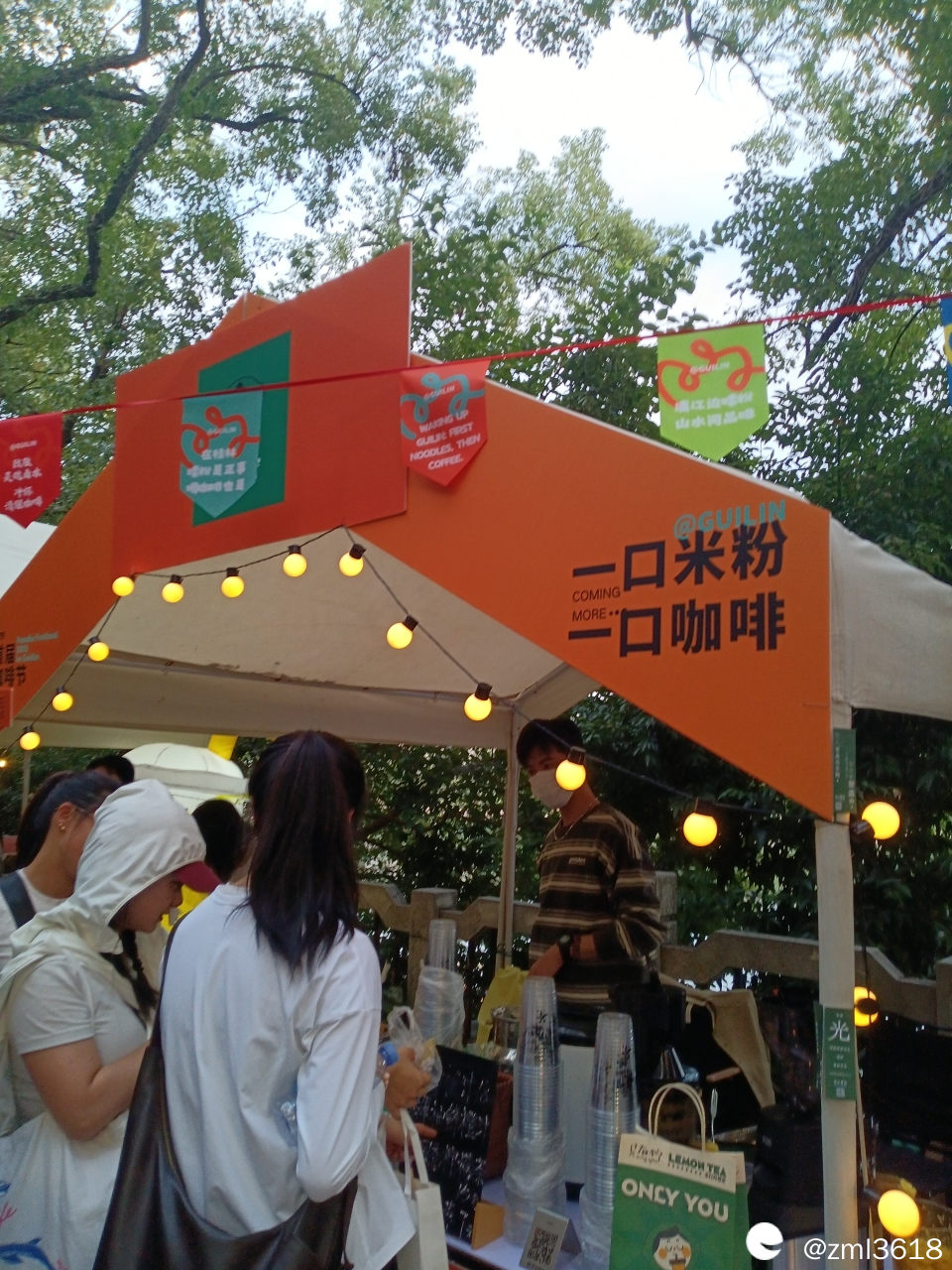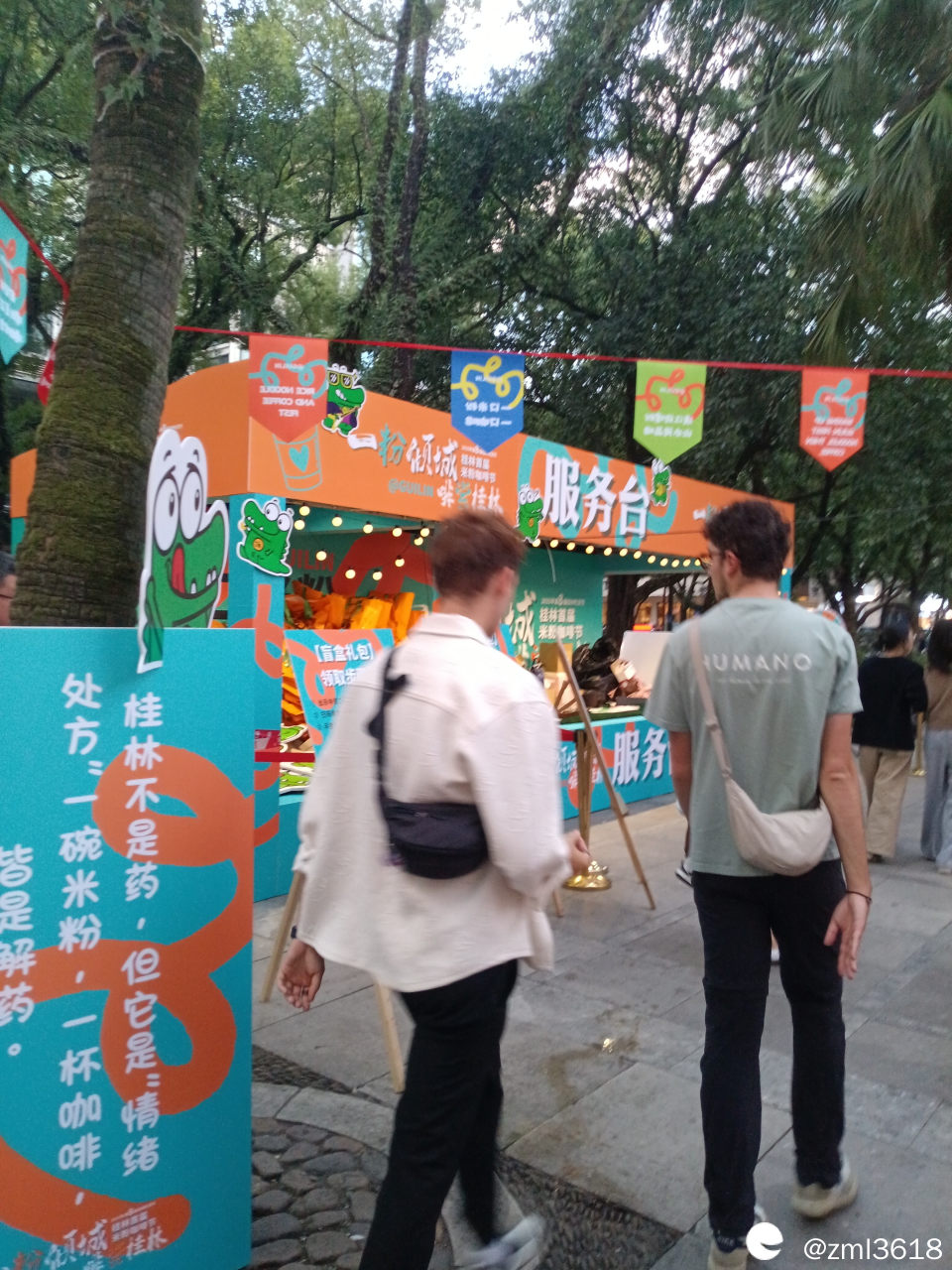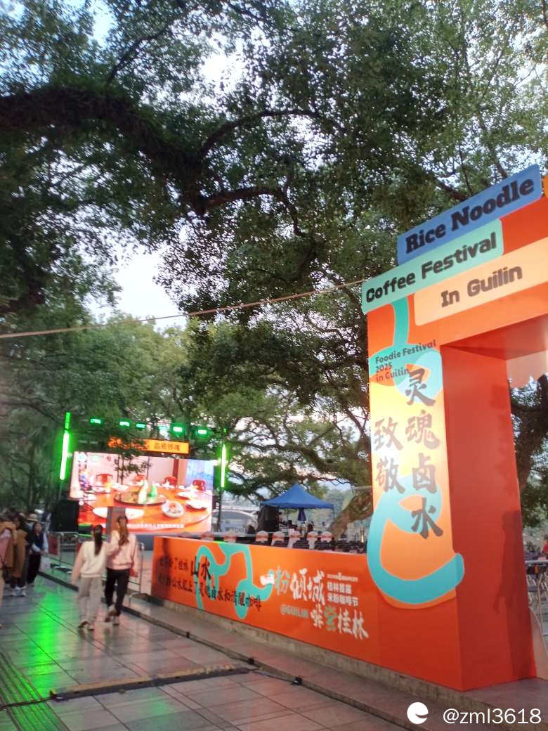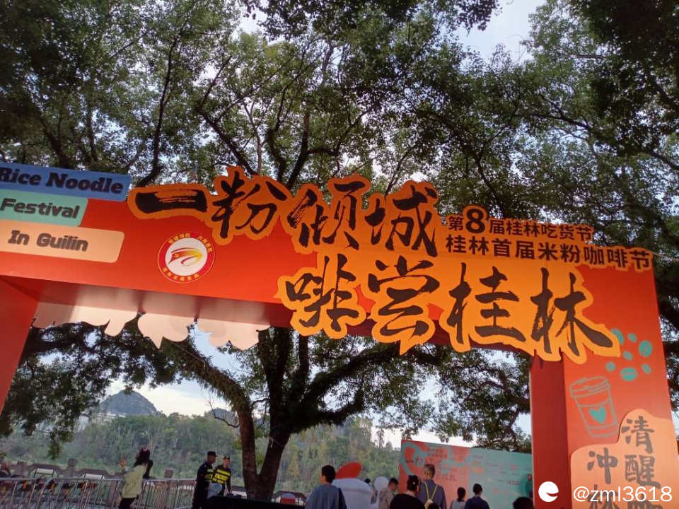 歪果仁,外地游客也来逛滨江大道,感受桂林米粉咖啡节。