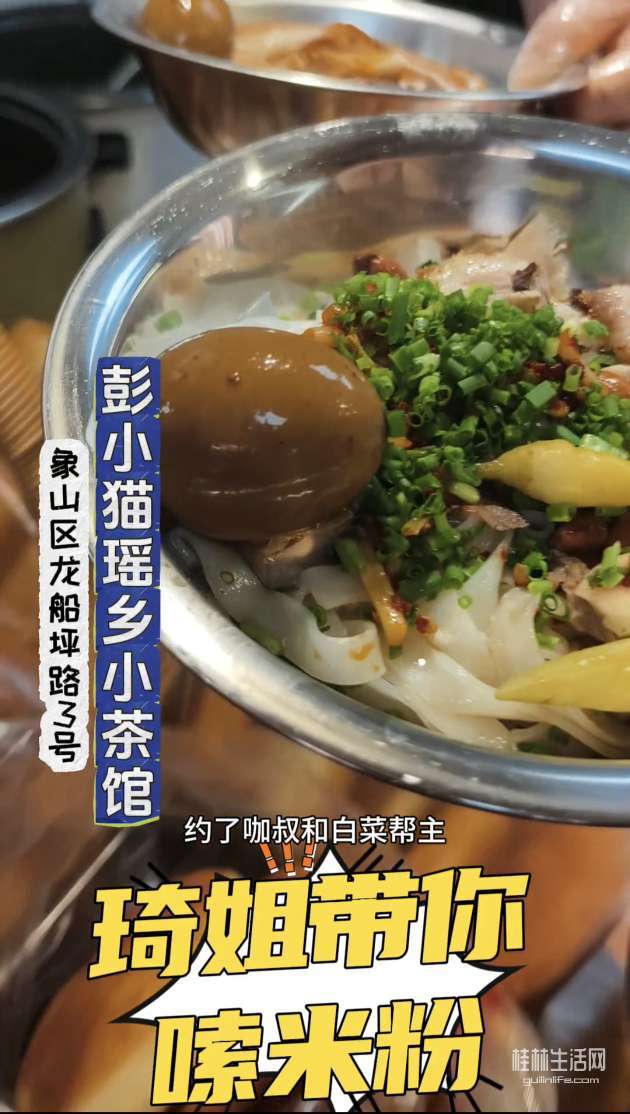 龙船坪里面有很多家米粉店,但是最近这家彭小猫比较火,严格意义来说,这不是一家真正的米粉店,而是一家瑶乡油茶店。在这里嗦米粉,可以免费吃卤蛋或者喝油茶(两碗)。