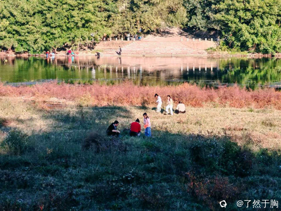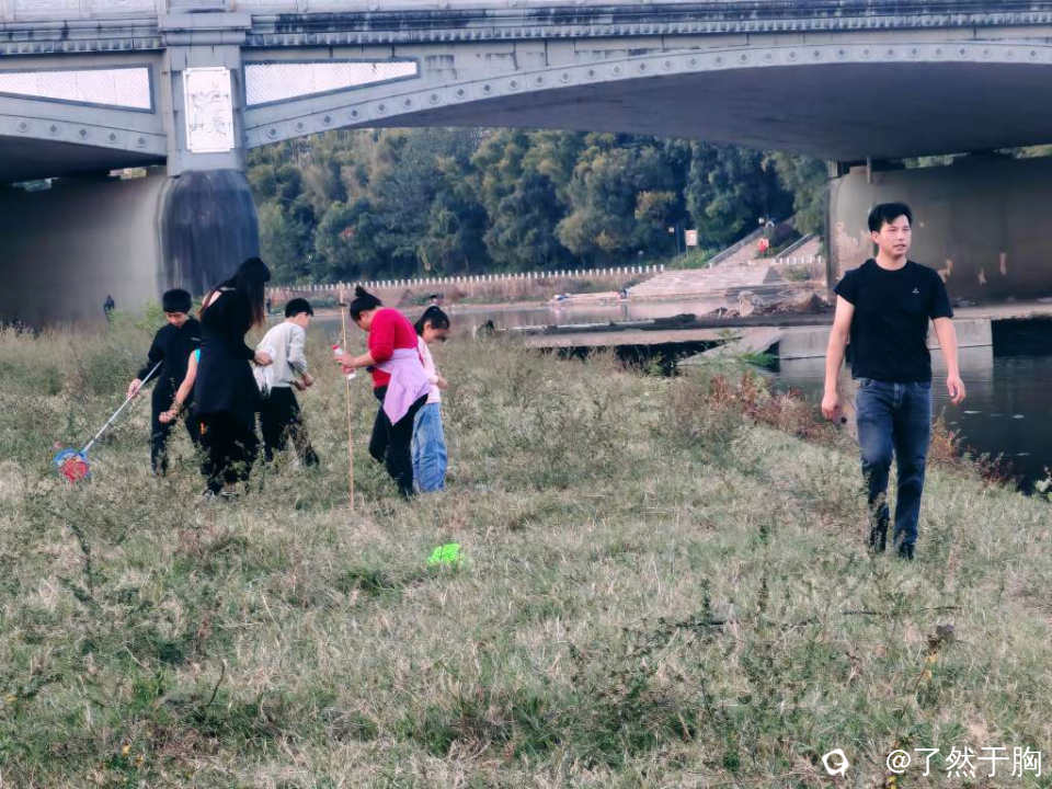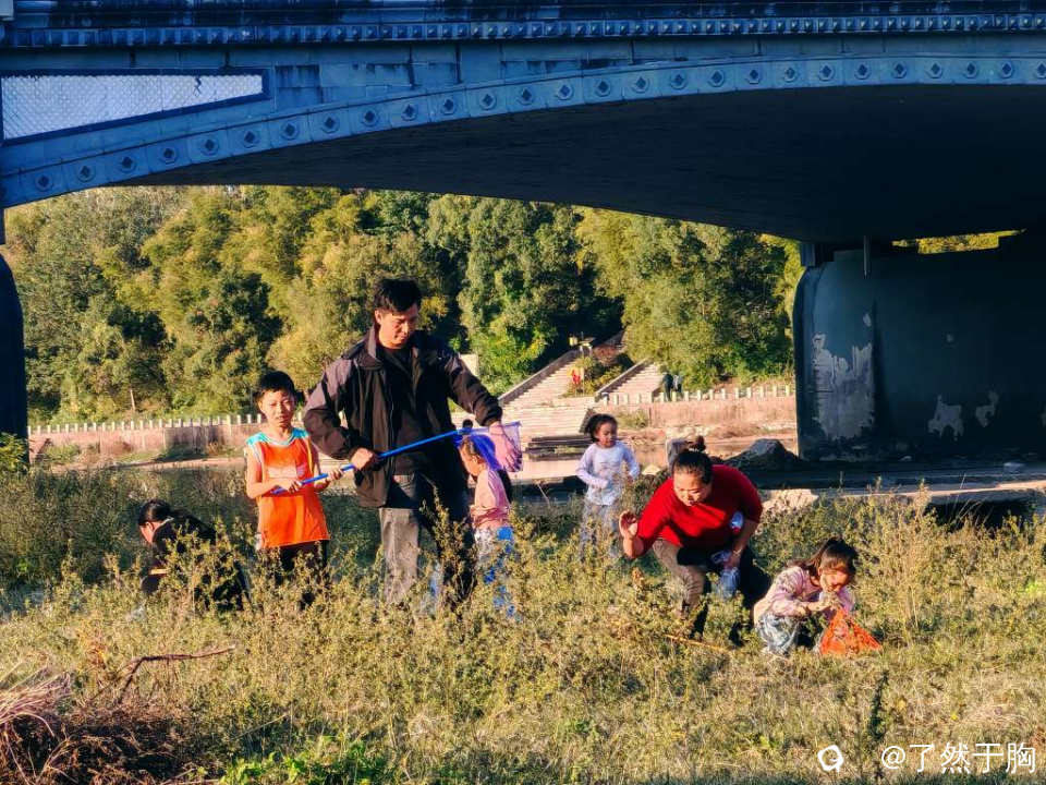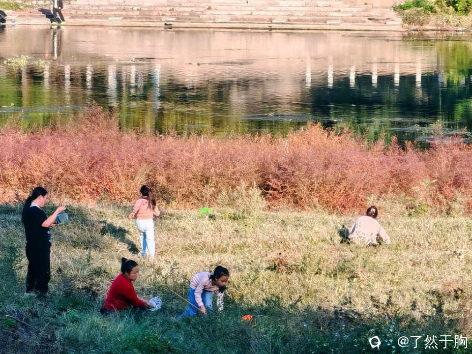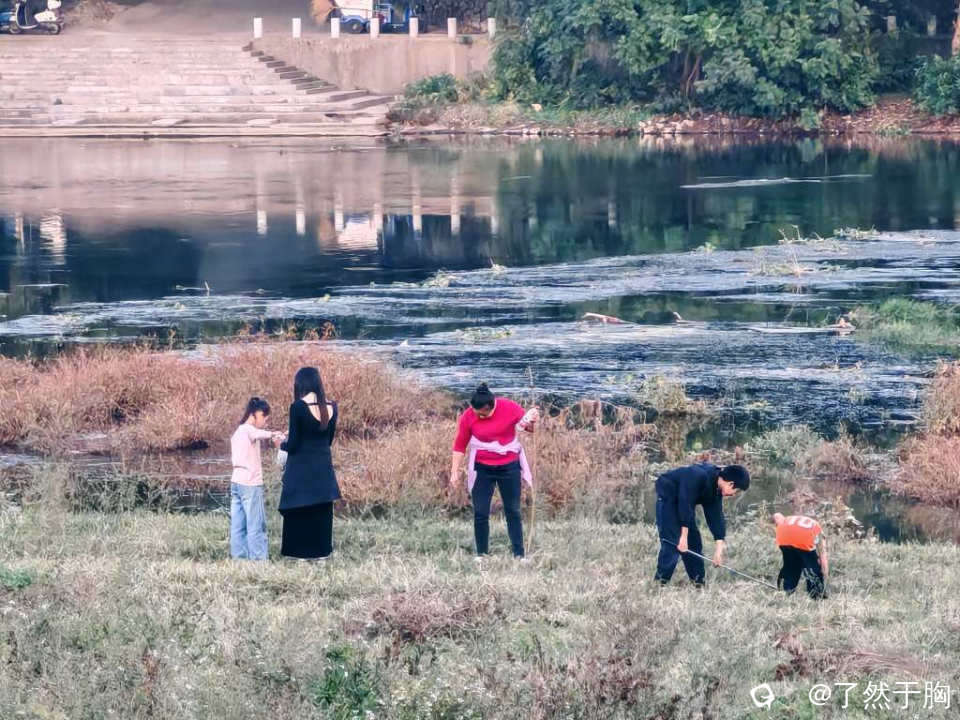 河滩草地上,不知为何,蚂蚱持别多,每天都会有人前来捕捉,只不过周末人特别多罢了。