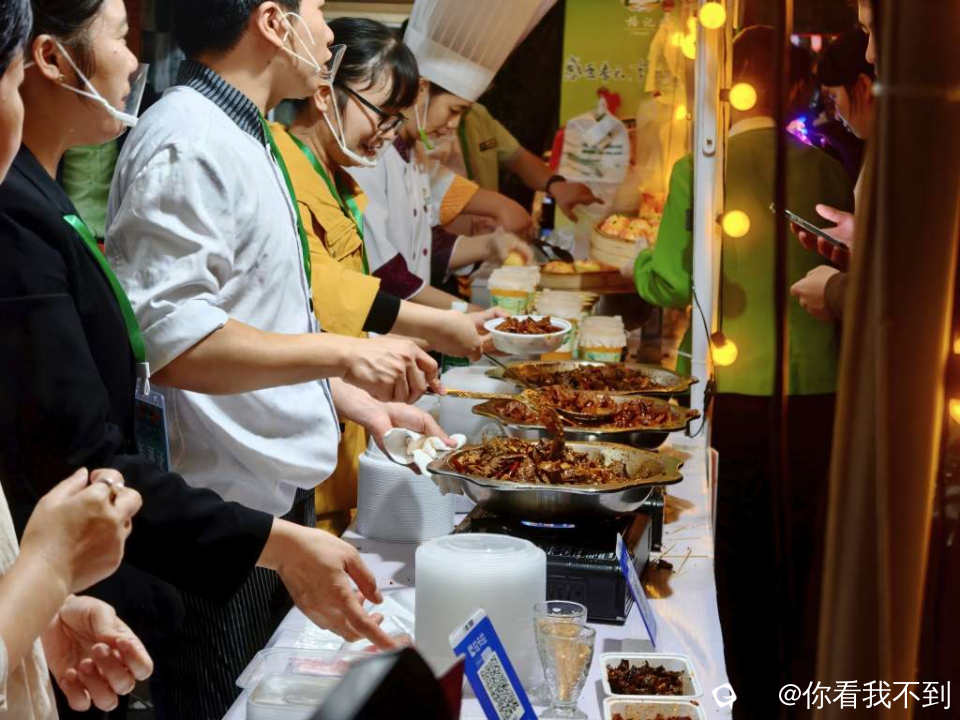 买卤味的人非常多,厨师不停的在给顾客翻炒加热卤味,叫卖声和支付到账的提示声交融在一起。