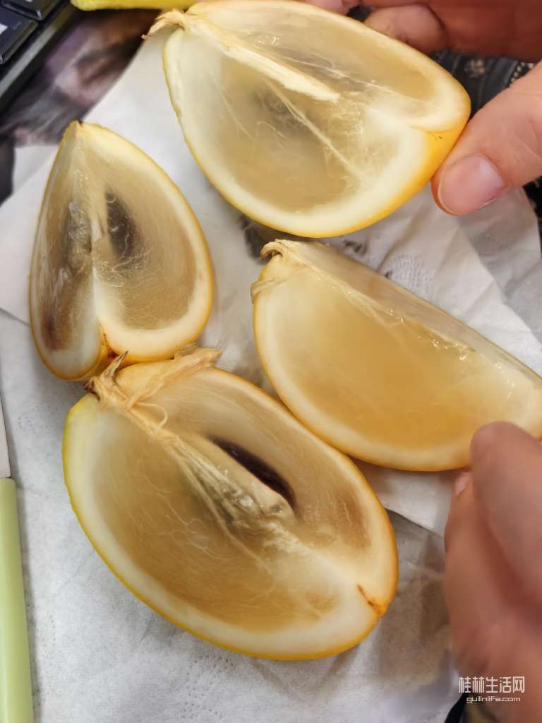 黄晶果的作用及建议,适量食用即可,我不接受建议,因为长这么大只吃过这么一小半个,还没吃出味道呢?!