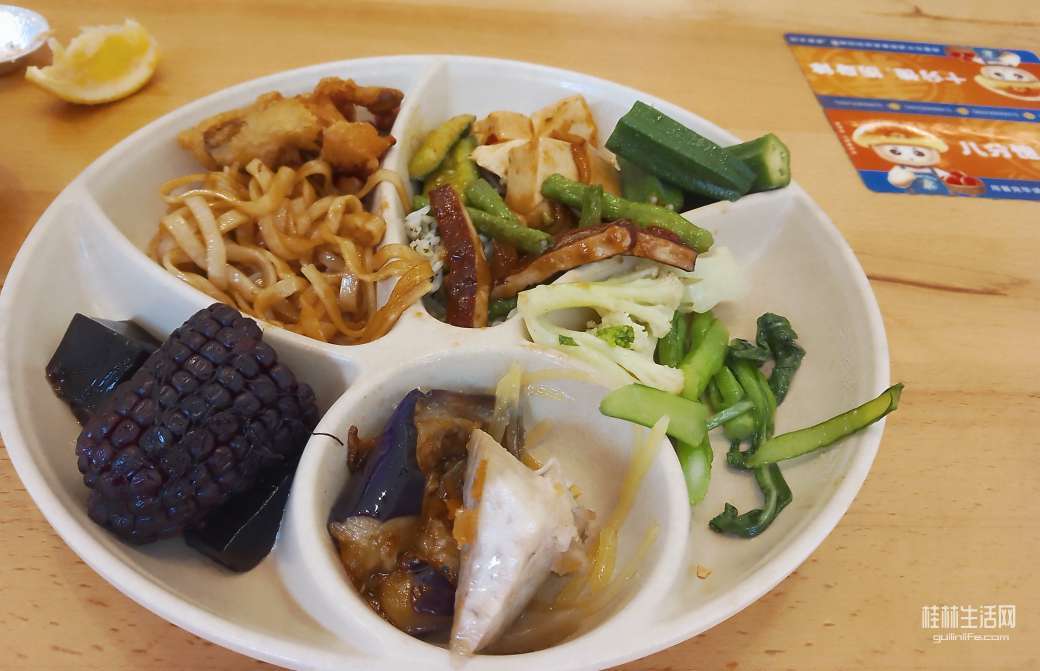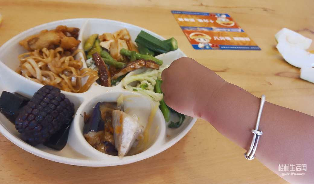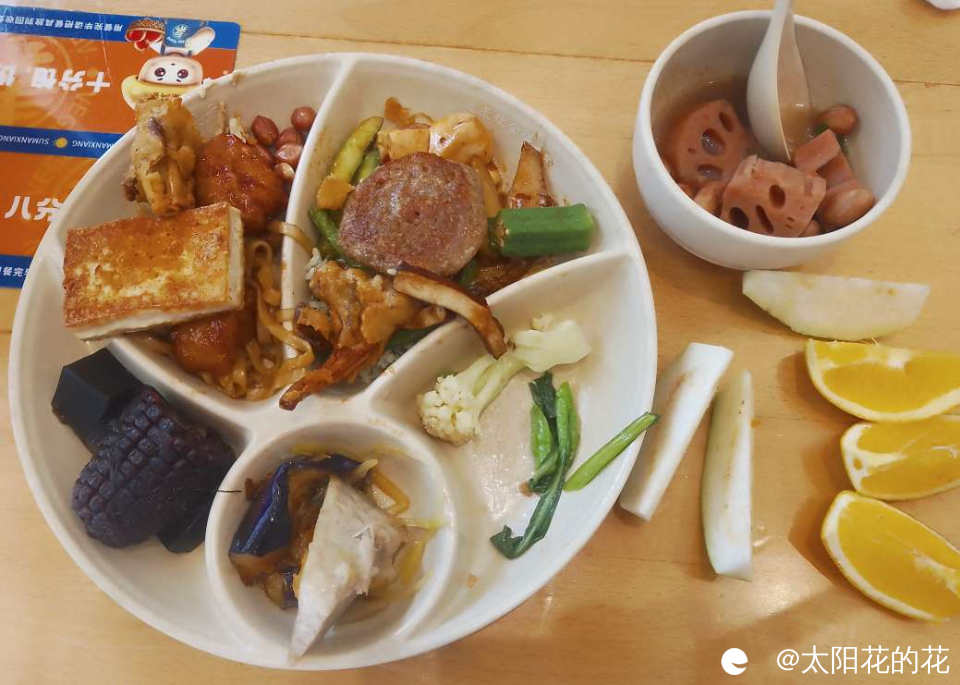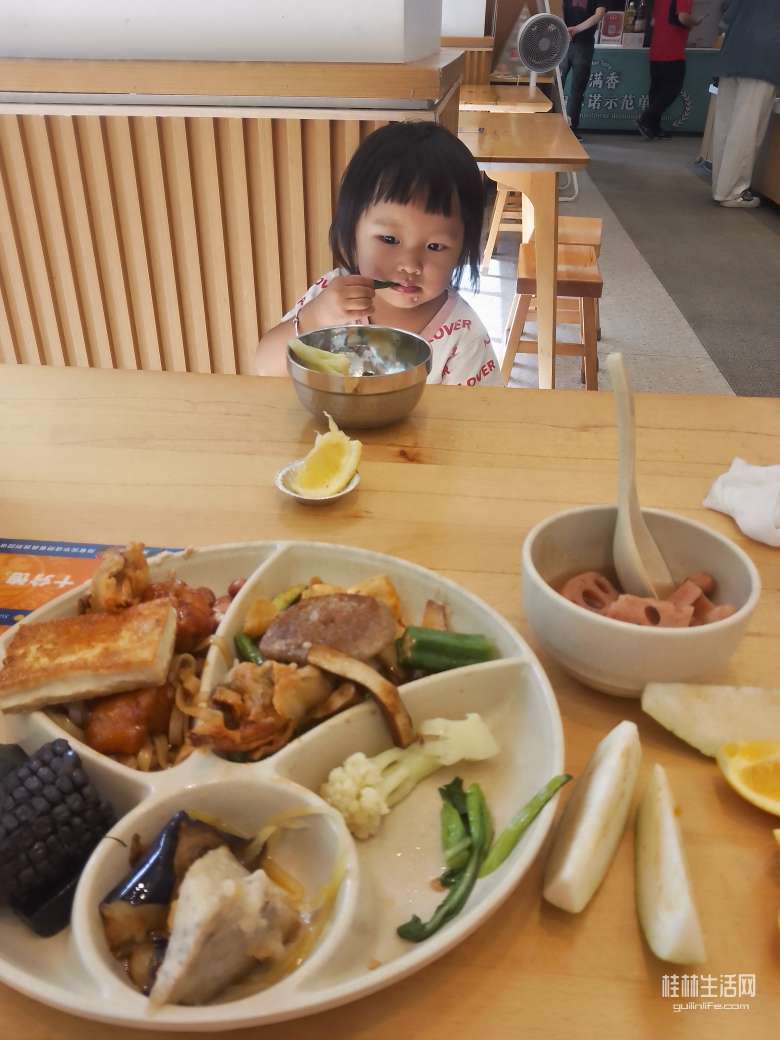 不喜欢吃素菜的小孩子来这里也饿不着,因为样式多,总有几样她喜欢吃的,小朋友好喜欢吃蘑菇和花菜,还有豆腐丝和炒粿条也吃了很多……