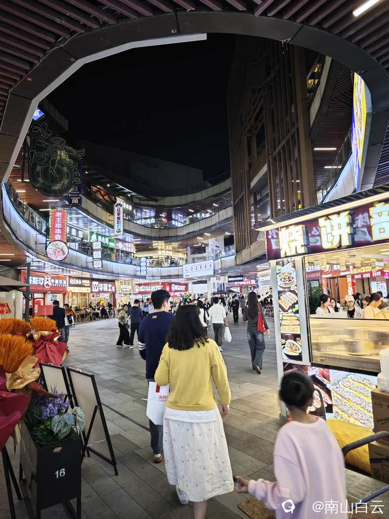 周末的吾悦广场,人群熙熙攘攘,美食令人流连忘返。大家衣服单薄,好似夏天。