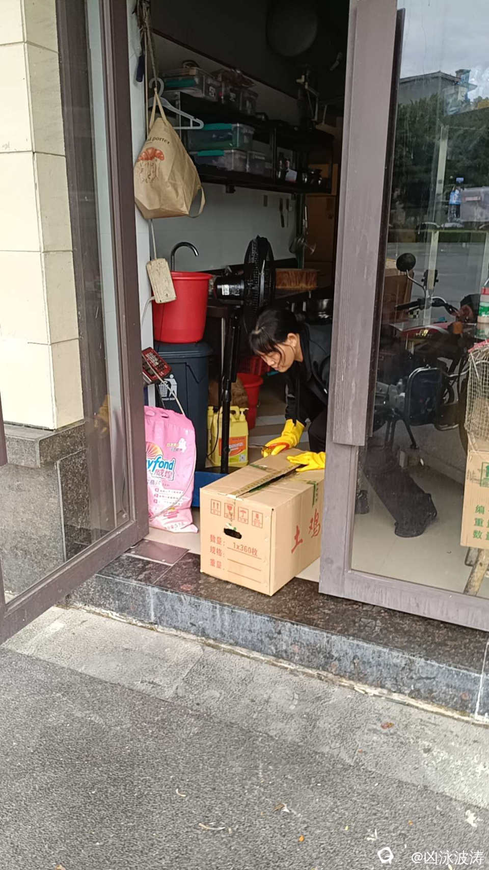 看到那满满的一盆葱花,米粉店老板很伤心了。