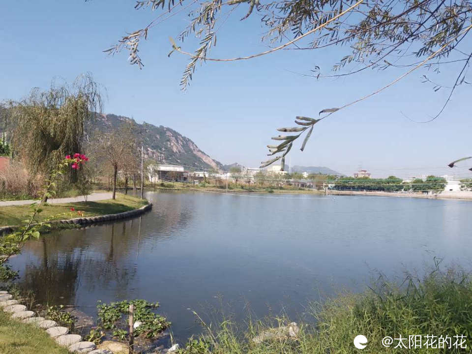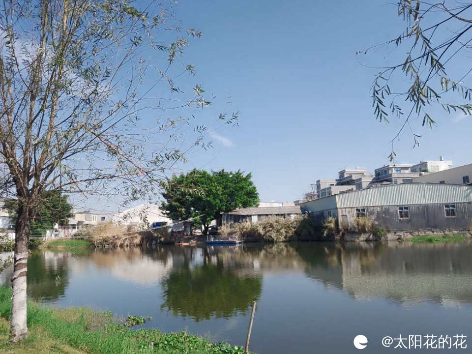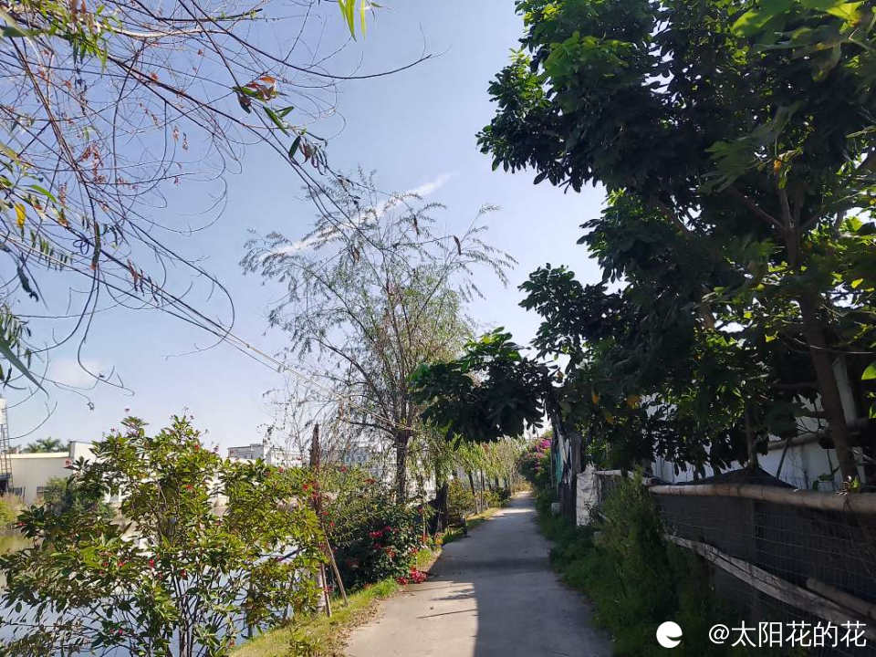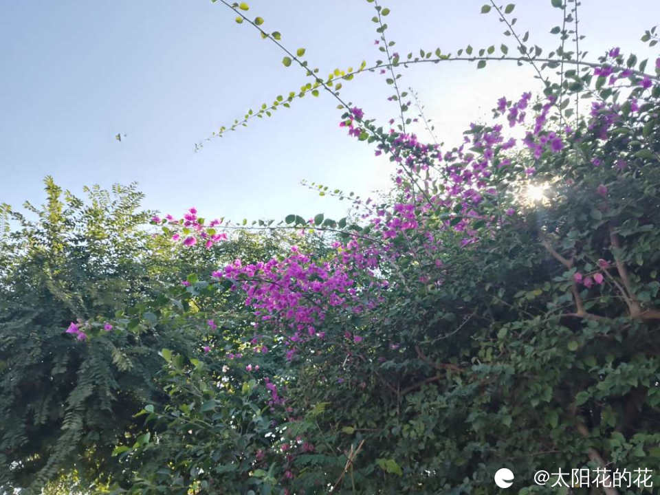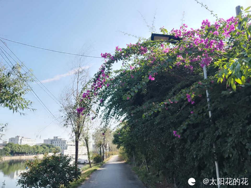 河边种了好多柳树,旁边的三角梅也开的好旺……