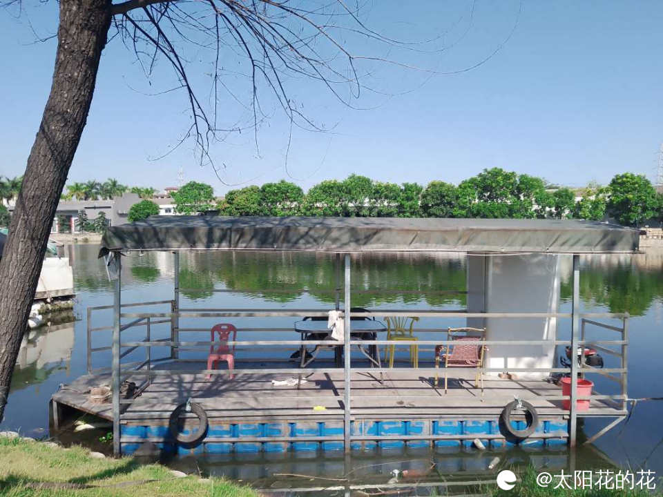 河里停了几条船,上面摆了张喝茶的桌子,这些人好会享受生活啊……