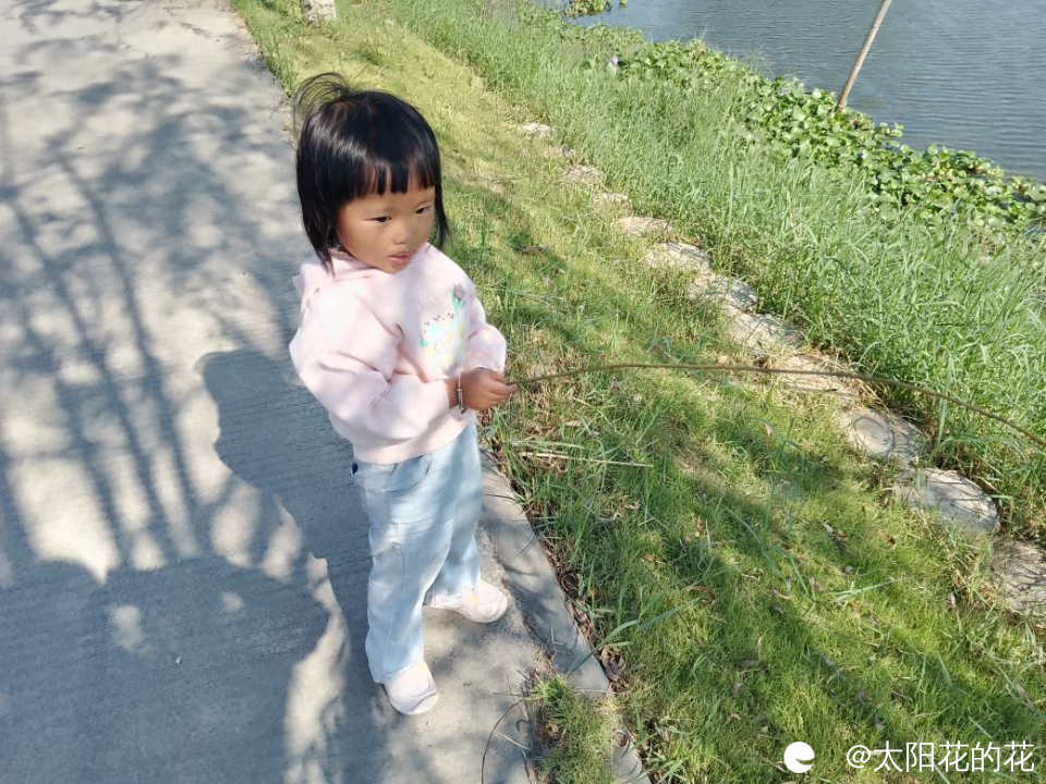 小朋友说她钓了一条好大的鱼……