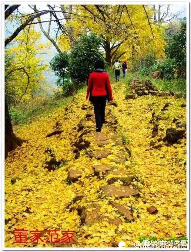 11月23日(周日)探访失落的村庄--董家、范家银杏-梯岭古道一日游海洋与潮田之间有董家和范家两个村子,在此已繁衍居住12代,现村民已搬到山下居住,上到董家的路陡峭且长,约一小时,村中有很多白果树,映入眼目的是一棵棵白果树此时金黄一片。范家有古老的房子,屋顶飞檐造型精巧别致,走进屋内,屋内庭院深深,可惜却杂草丛生,早已没有了人烟的气息,满目苍凉的感觉呈现在眼前,看着那错落有致的房间布局,可以想象得出昔日主人过去的辉煌。梯岭古道:知道这条古道的人不多,它是在乾隆以前的古道,自古以来就叫梯岭古道,相传由湖南永州人蒋富科修建梯岭石板路,他曾经行走在这条古道上经商多年,娶这里的村姑为妻,还是在此行善,不得而知。徒步线路:大兴坪-董家-范家-小浮-梯岭徒步里程:10公里,走约4小时集合时间:8:15集合,8:30出发集合地点:七星公园正大门(解放桥方向)(三里店方向的可在三里店加油站等车)活动费用:49元/人(包括来回车费,领队费,保险费)饮食安排:中餐自带活动领队:朱紫巷报名电话:1897732925313517739253八桂行户外群:109898998咨询活动详情微信号18977329253
