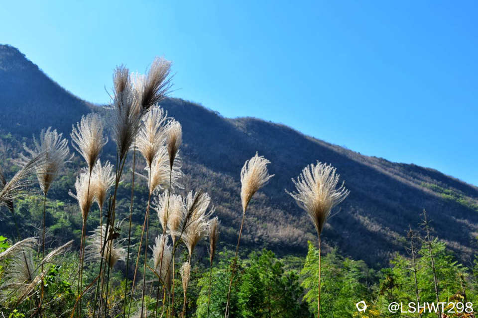 山脉中迎风摇拽的茅草,飘落间的黄叶场景很是养眼。。。