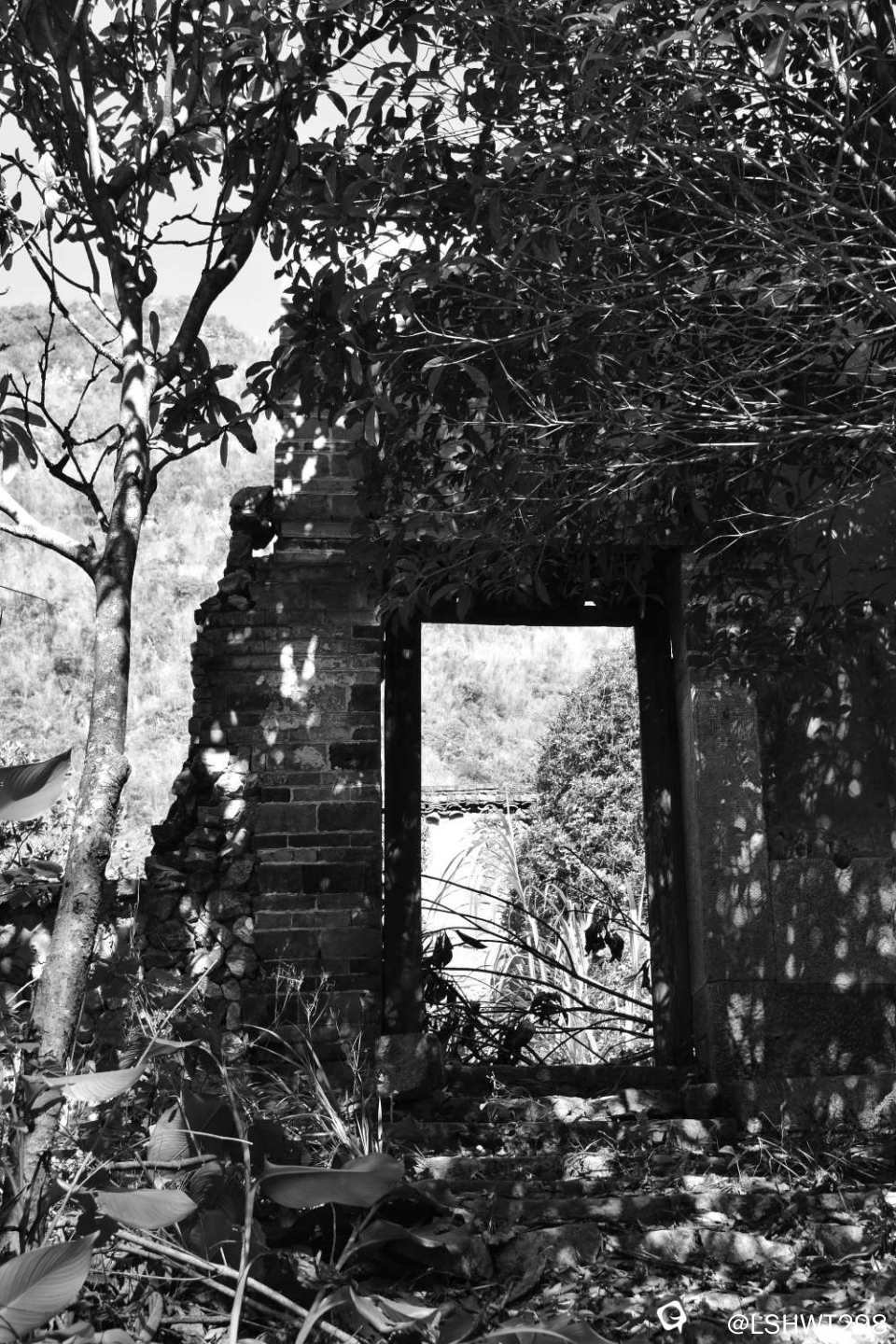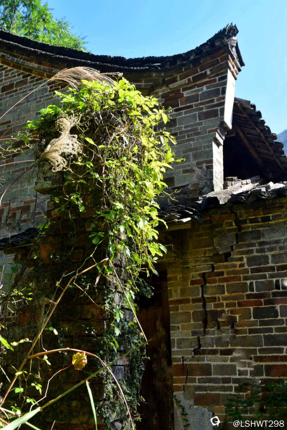 范家,独户单进式深山青砖石基大宅,杂乱墙头草与崩裂墙体正述说它曾经历史与沧桑,也惊叹当年建造者的艰辛。。。