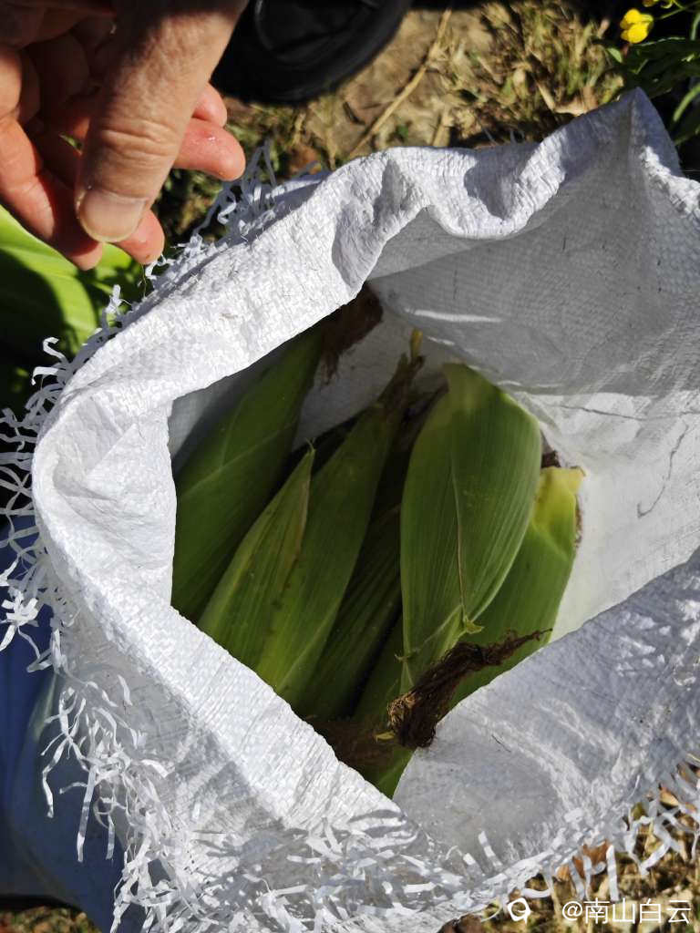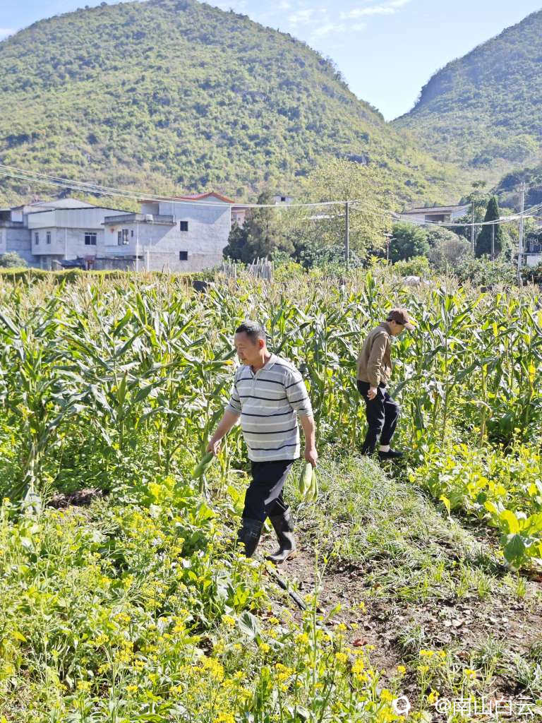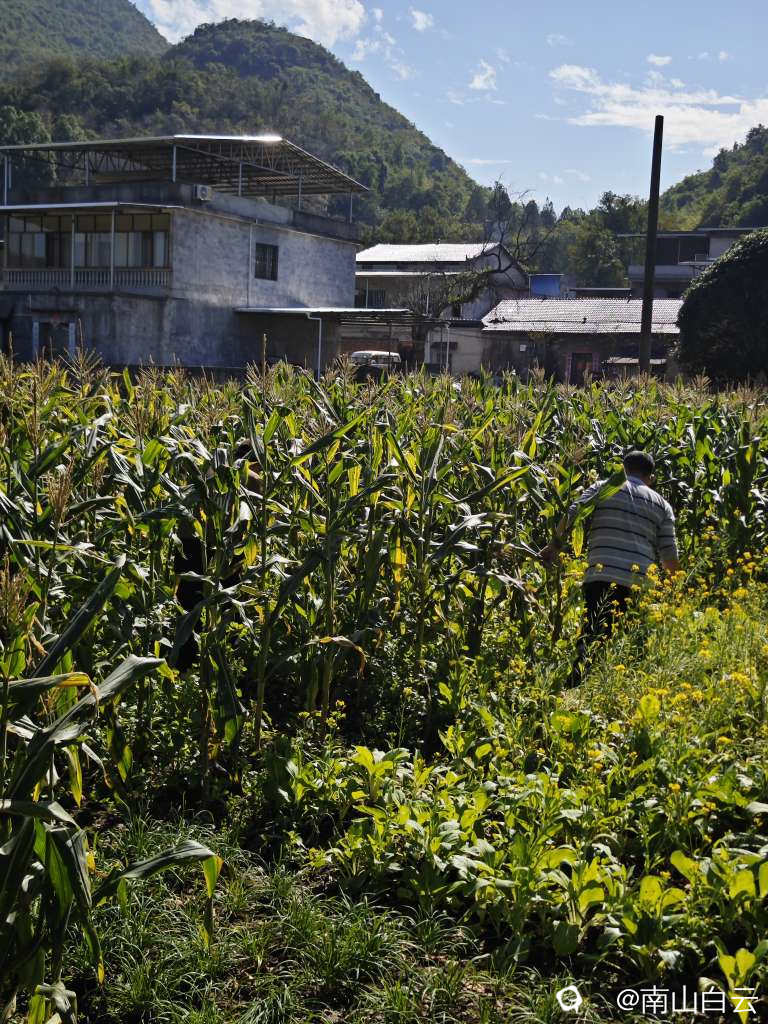 看到田里的玉米和菜花,忍不住收获,金色的秋天,人间生活。