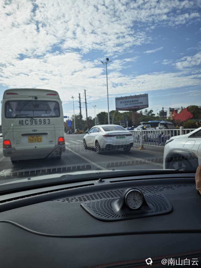 今天上午,凯风路到雁山的桂阳公路,大堵车。即使绿灯也要等,车难以启动。