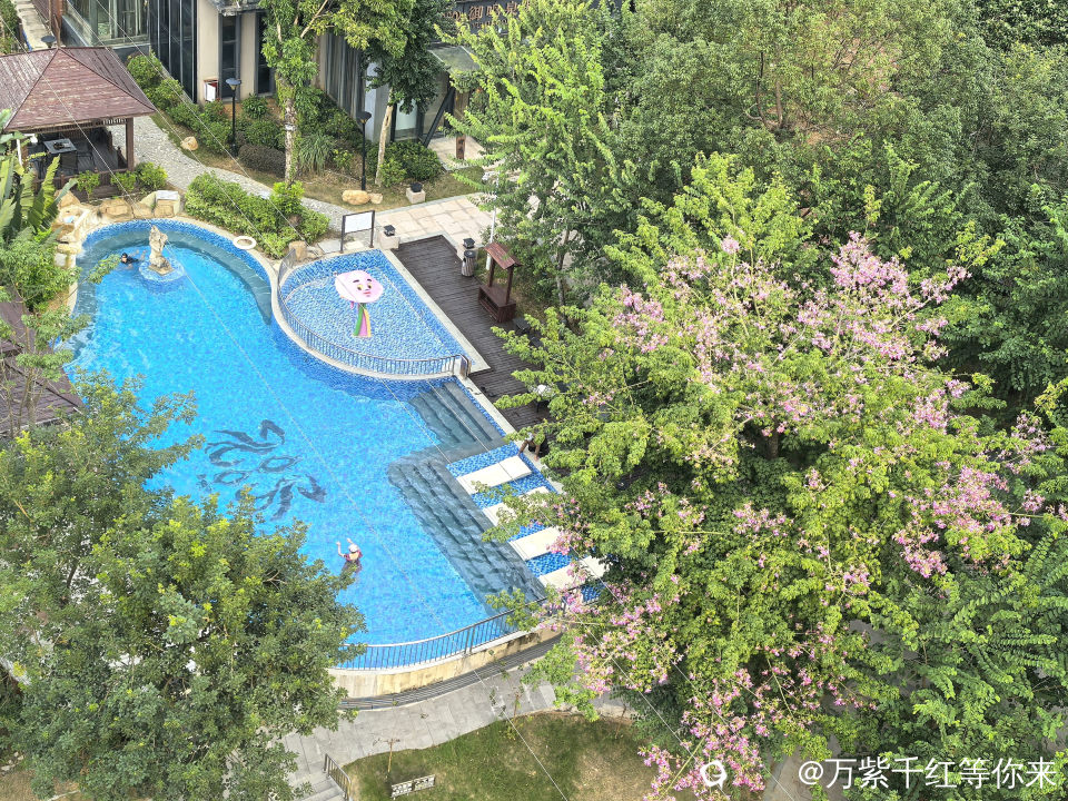 暖阳下的冬日,异木棉花、冬青姹紫嫣红,繁花似锦;为温泉酒店增添了舒适自然的环境,空气里散发出花香夹着草木与泥土的芬芳沁人心脾,这一刻,身心彻底沉浸在这份与世无争的静谧里。