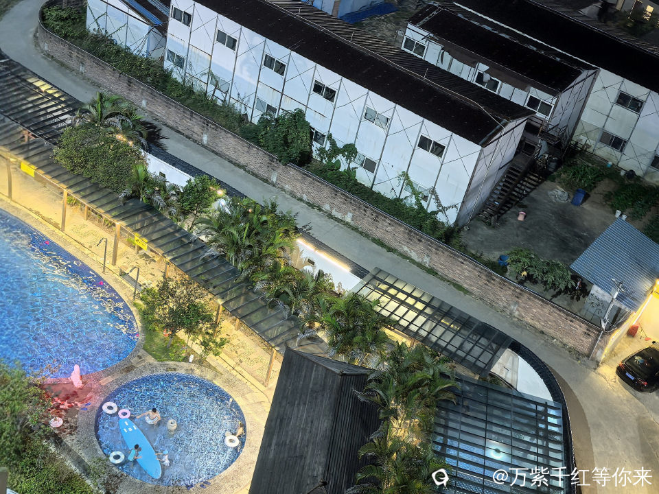 抵达温泉酒店,道路两旁的美丽异木棉开得热烈灿烂,还有红彤彤的冬青挂满枝头。大大小小的温泉池、儿童游泳池错落有致的分布在楼间外或林间里;每个房间露台外都有泡汤池,青石板砌成的池壁放满水,正冒着细密的热气,浸入泡汤池中,瞬间驱散了旅途的疲惫。