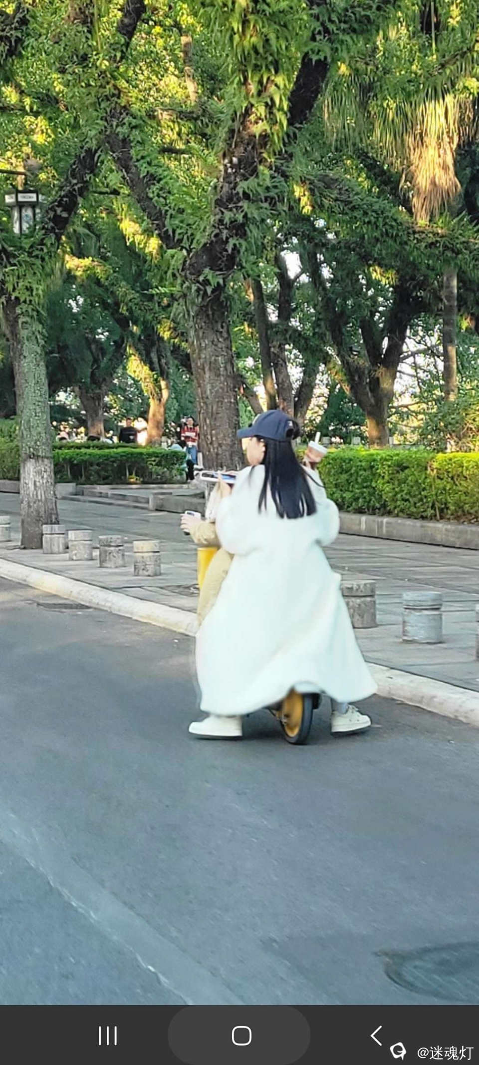 近日,某公园道路上出现惊险一幕:两名女孩同乘一辆小型共享单车,后座女孩身着长款大衣,左手持奶茶、右手握手机,姿态摇摇欲坠。这种违规载人行为不仅违反交通规则,更存在极大安全隐患,提醒市民出行需遵守交规,切勿因一时疏忽忽视生命安全。