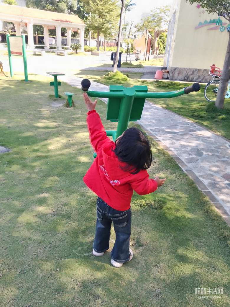 这里有好多健身器材,还有一大片草坪……