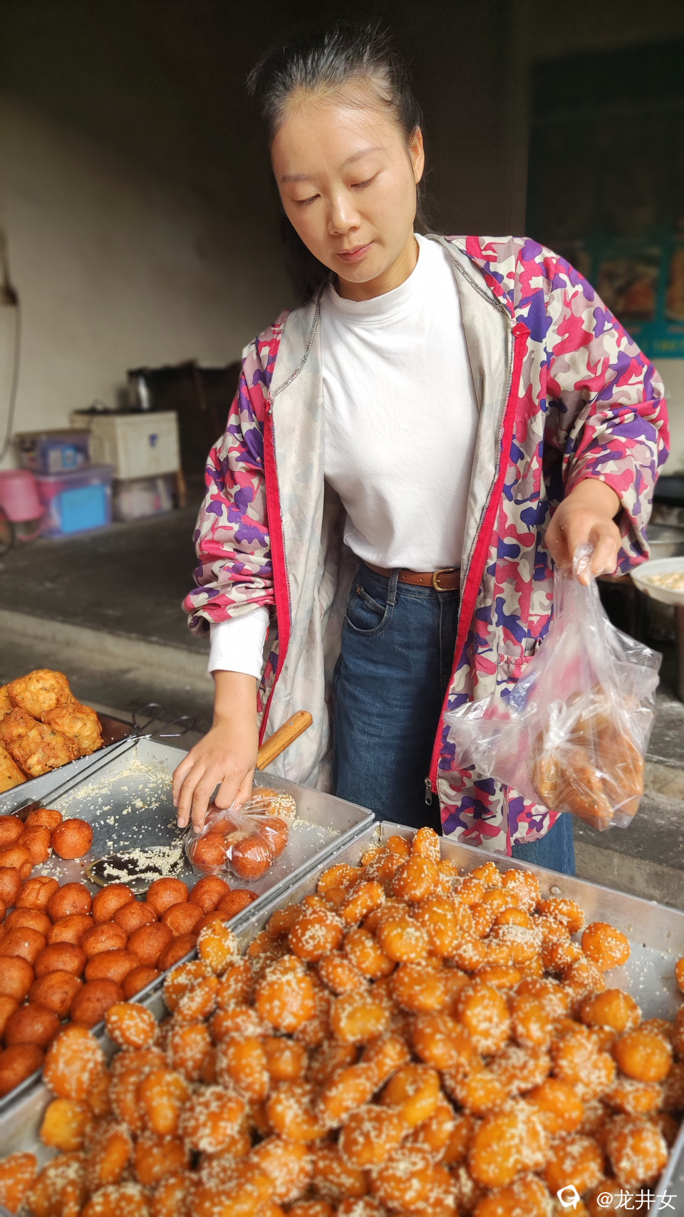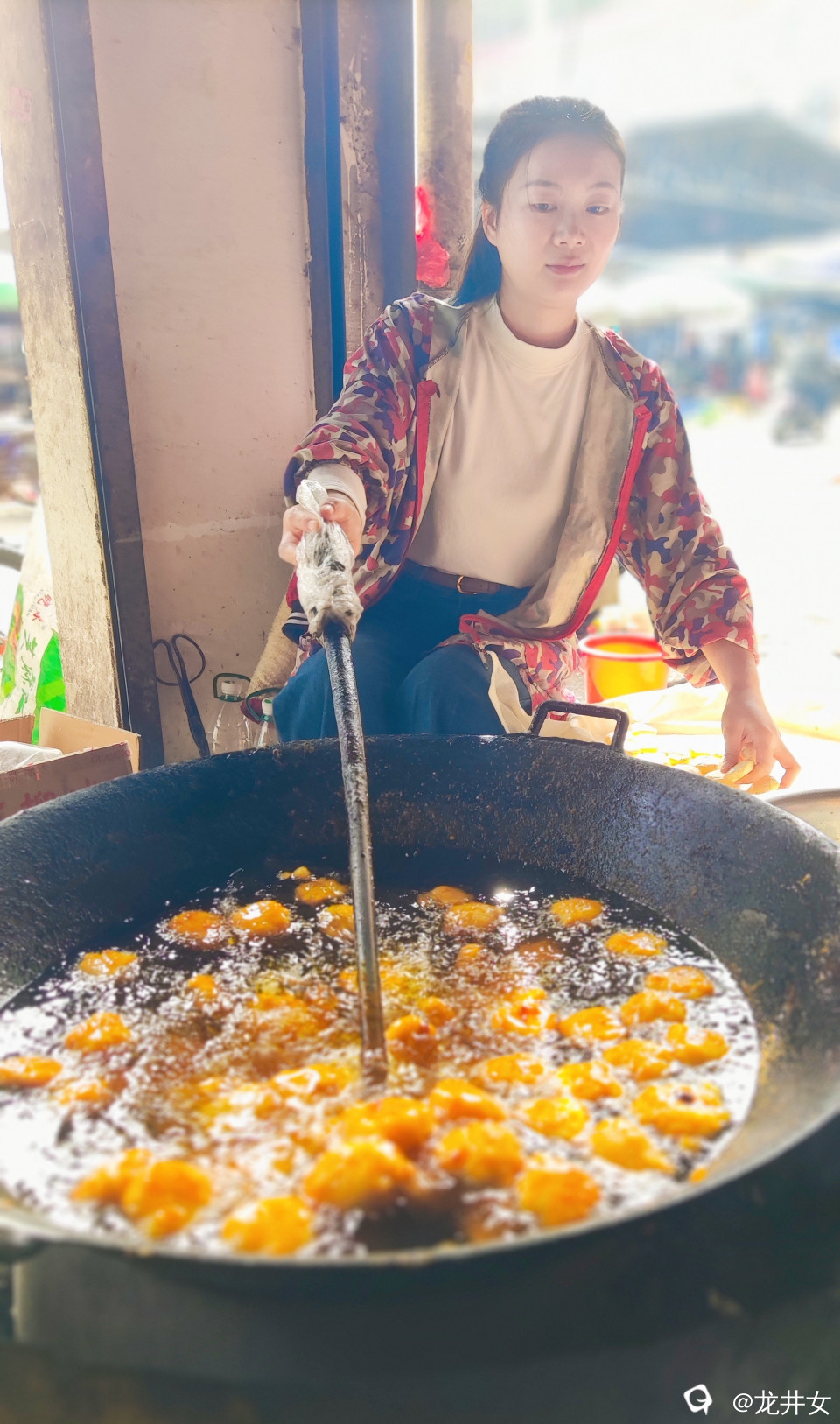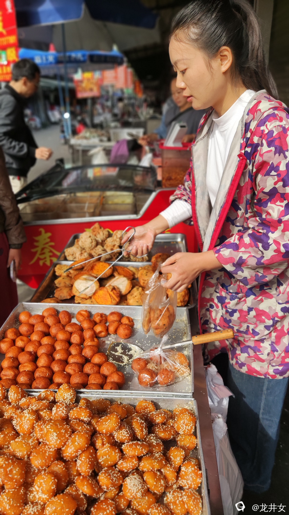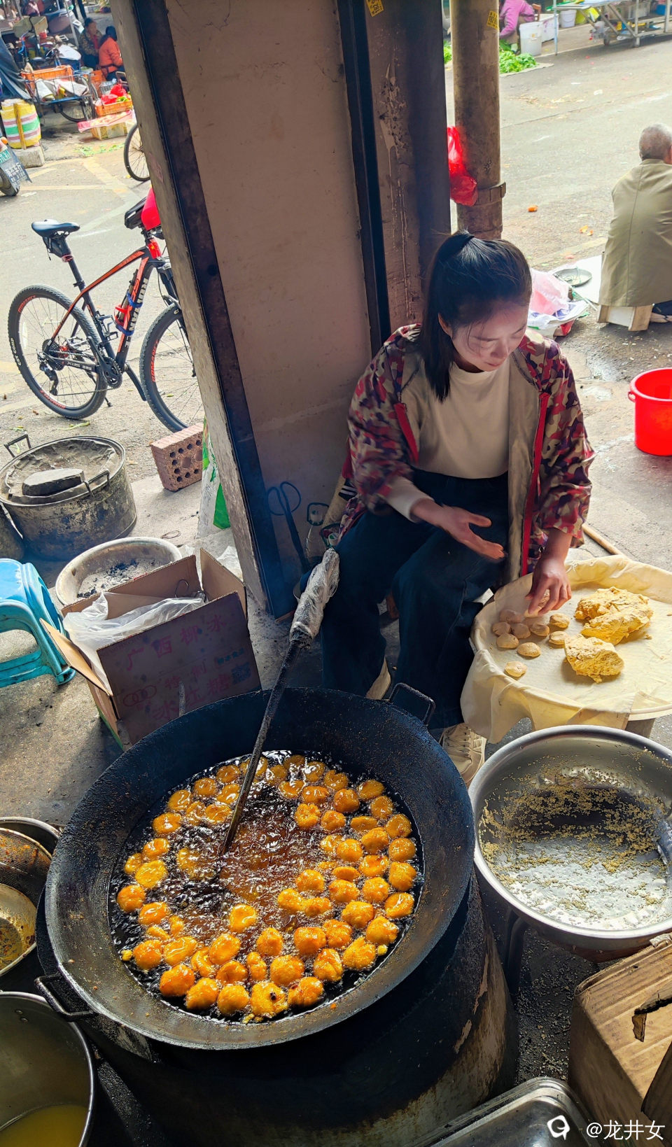 每次到潭下圩,都要来碗米粉,来两块钱油堆粑粑。味道好,想怎么吃就怎么吃,油堆粑粑拌米粉,可能是我的独创吃法了。