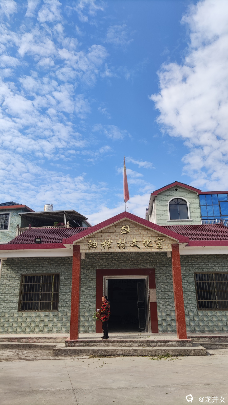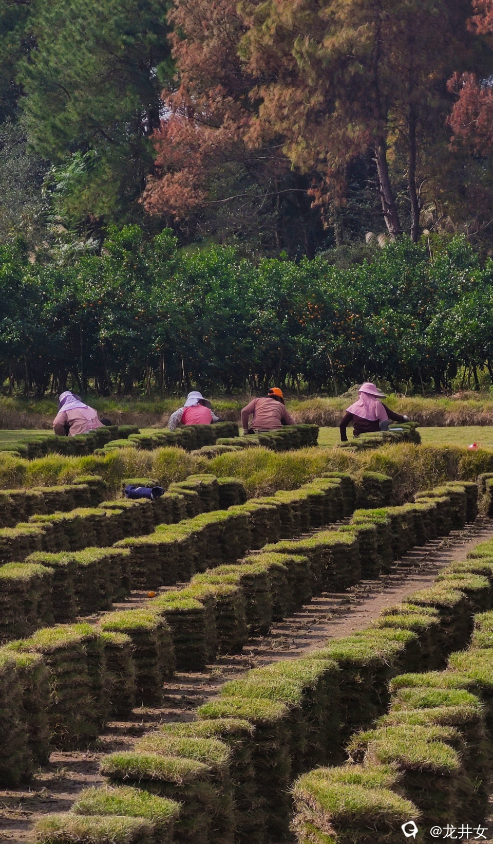 在油榨村还看到了温暖的伟人画像,漂亮的楼房围墙外挂有冬瓜丝瓜,田间里,铲收种植草皮也是要耐心的细活。