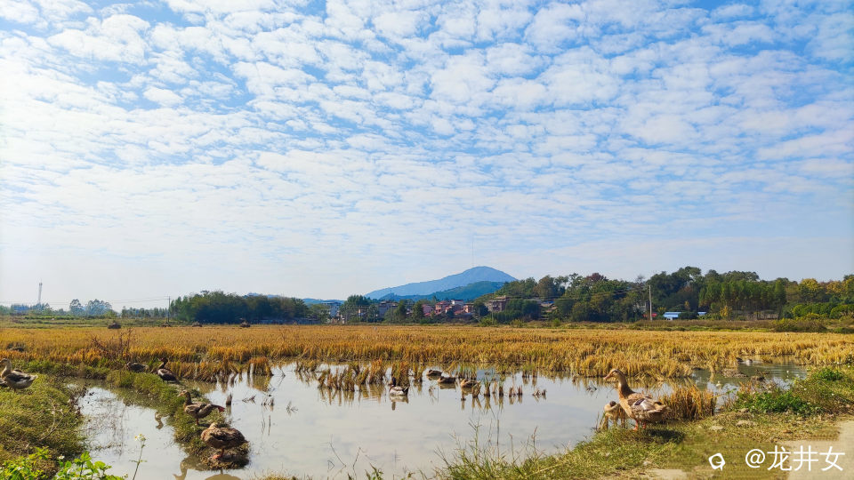 薛家村的四方井,清澈如镜,青砖上的青苔像在述说着久远的故事。田间的鸭,悠闲自在,稻草里,鸡总能找得到遗留的谷粒。