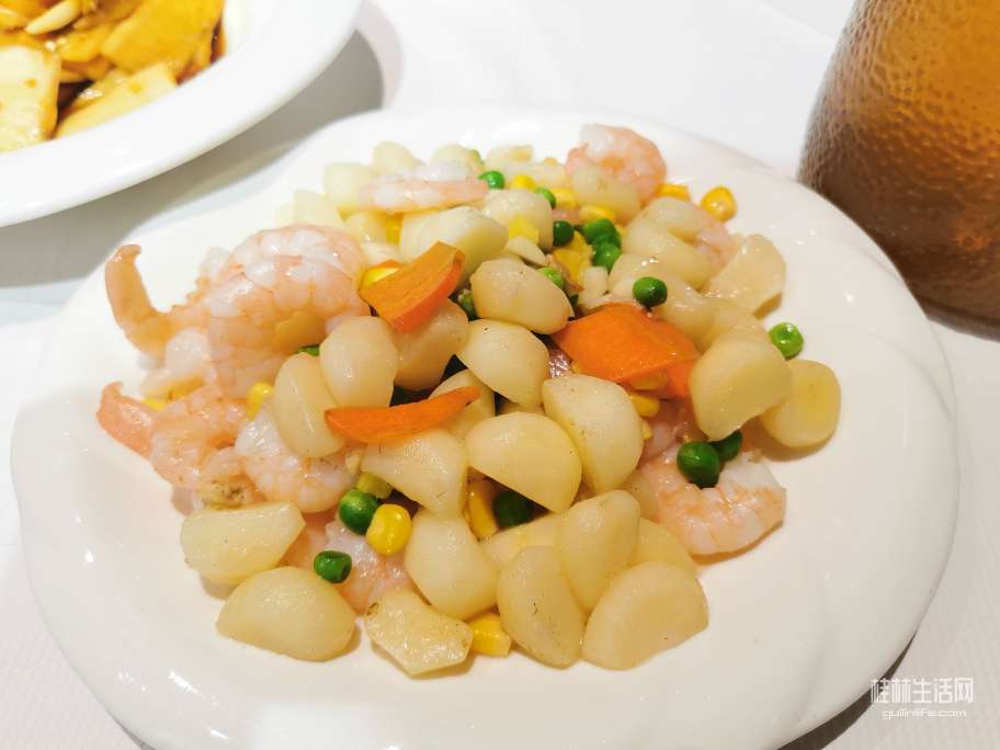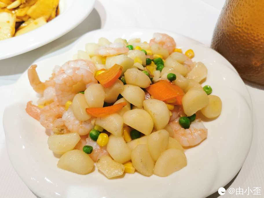 马蹄玉米粒虾仁,特意为安达宝宝点的,他喜欢吃虾,整盘虾仁不在话下,虾仁处理得刚刚好,Q弹又软。
