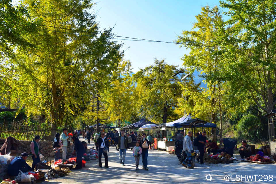杏伞的装点,阳光下贩卖农产品的老人,自拍自乐的小伙,叶丛中蹒跚的儿童。。。好一幅人少景美的当地烟火气。。。