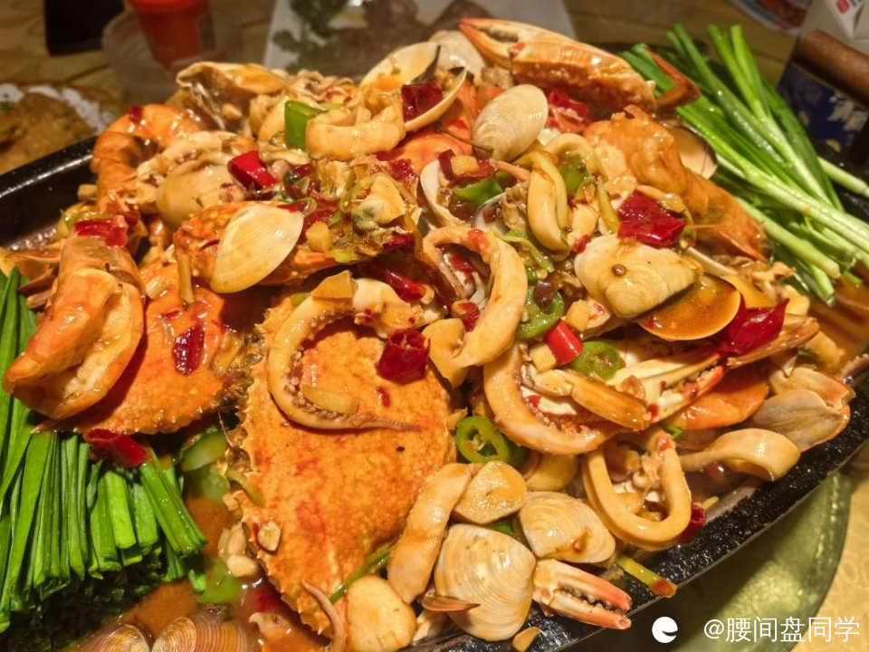 我们这个套餐是两百多,三男三女吃,这一盆是香辣海鲜锅,里面有:香辣蟹、香辣虾、香辣鱿鱼、香辣花甲……我们全州人爱吃辣能吃辣,无辣不欢!喵喵喵~
