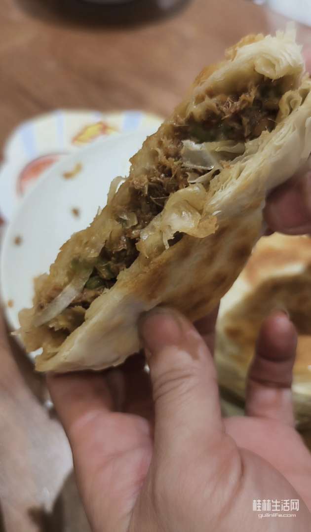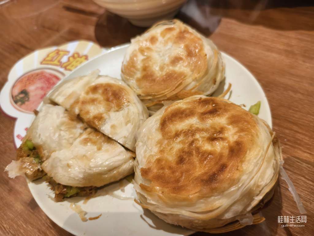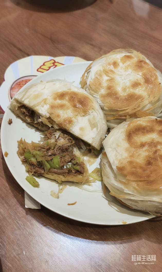 红油米粉味美汤鲜,我连汤带水勺了一碗,又搞了半碗馄饨,还有半个肉夹馍。肉夹馍是千层酥饼的外皮,咬一口掉渣渣,好香。最后,还搞了两个蒸饺,这一顿,又是哈吃哈胀。