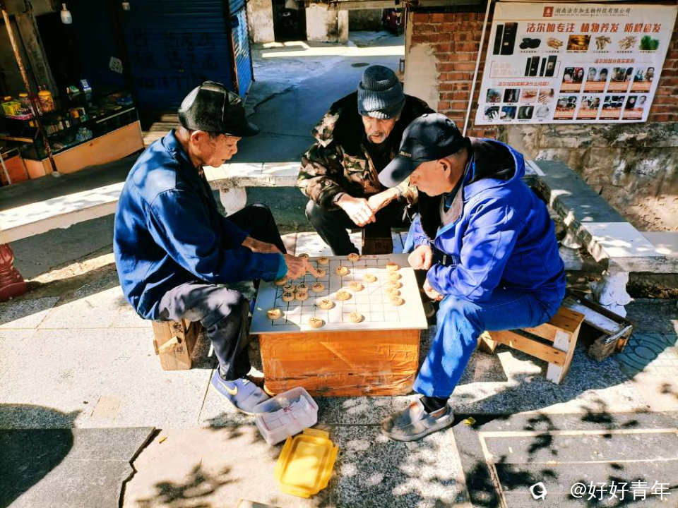 老人棋盘上的楚河汉界,落子有声;