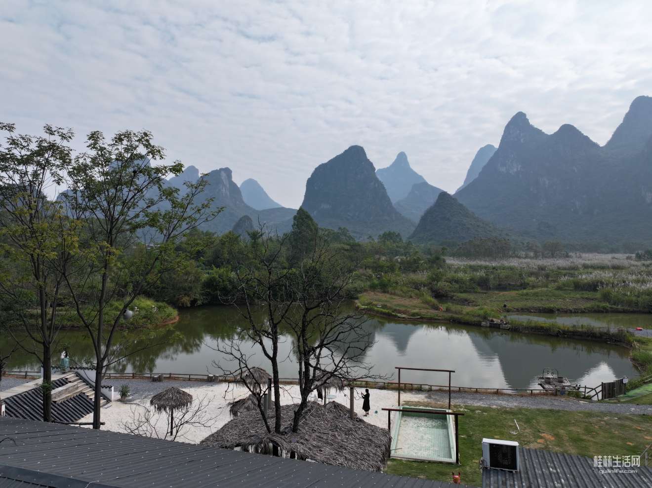 3. 下午:沉浸于小院的各个打卡点,如在天空之镜创作大片,在漓江渔火背景前留影,或漫步于秋季的芦苇栈道。带小朋友的家长可以在白色沙坑或儿童戏水池边放松休息。