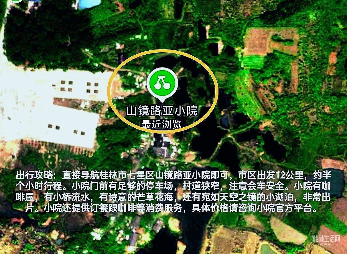 直接导航桂林市七星区山镜路亚小院即可,市区出发12公里,约半个小时行程。小院门前有足够的停车场,村道狭窄,注意会车安全。