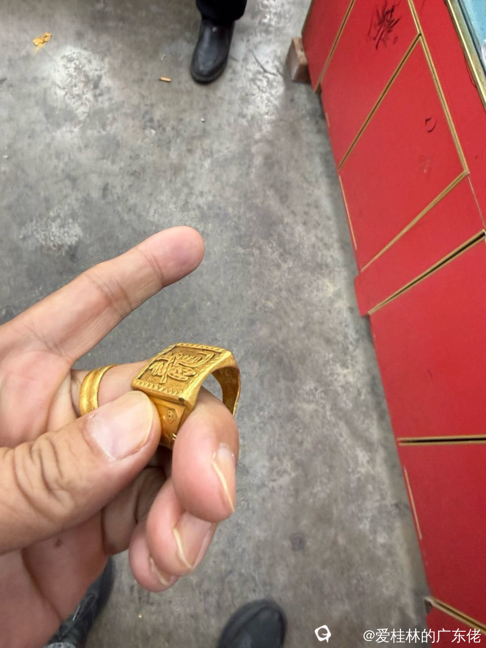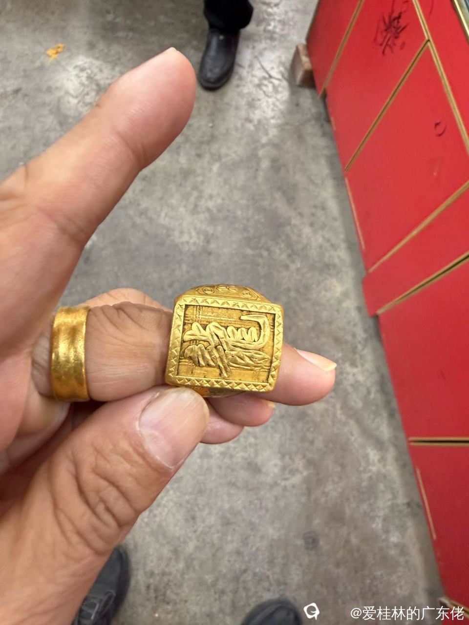 我父亲03年离开,就给我留了一个41克的金戒指,跟你这一样外观,就是正面不一样不是龙,被我老母拿去融了打手链了。以前那一代的人,特别男性,就是喜欢这种粗戒指,有什么好奇怪的
