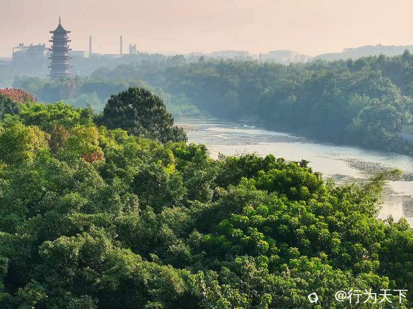 登塔远眺,整座公园尽收眼底——江水如带,青山作屏,白鹭不时掠过水面,翅膀沾着夕阳的金粉。