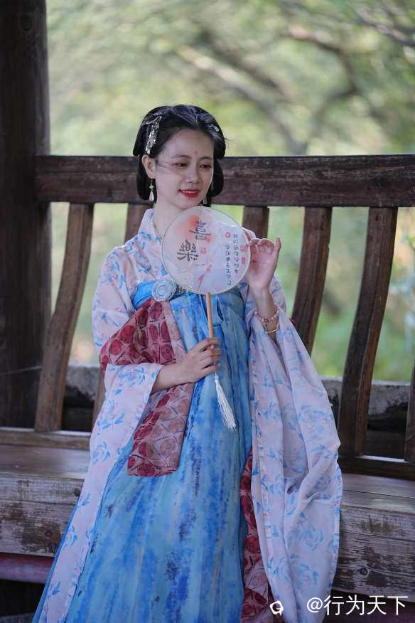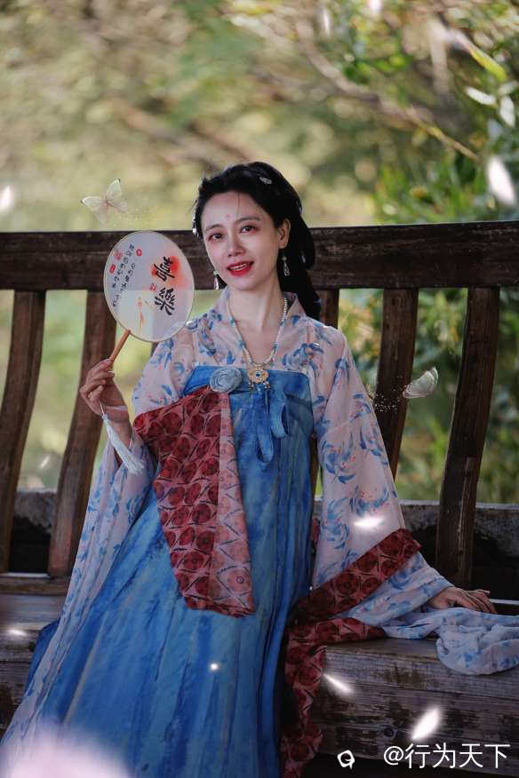 或是风雨桥头,齐胸襦裙的姑娘执团扇半遮面,珊瑚步摇随步伐轻颤,像是从唐宋词里走出的佳人。