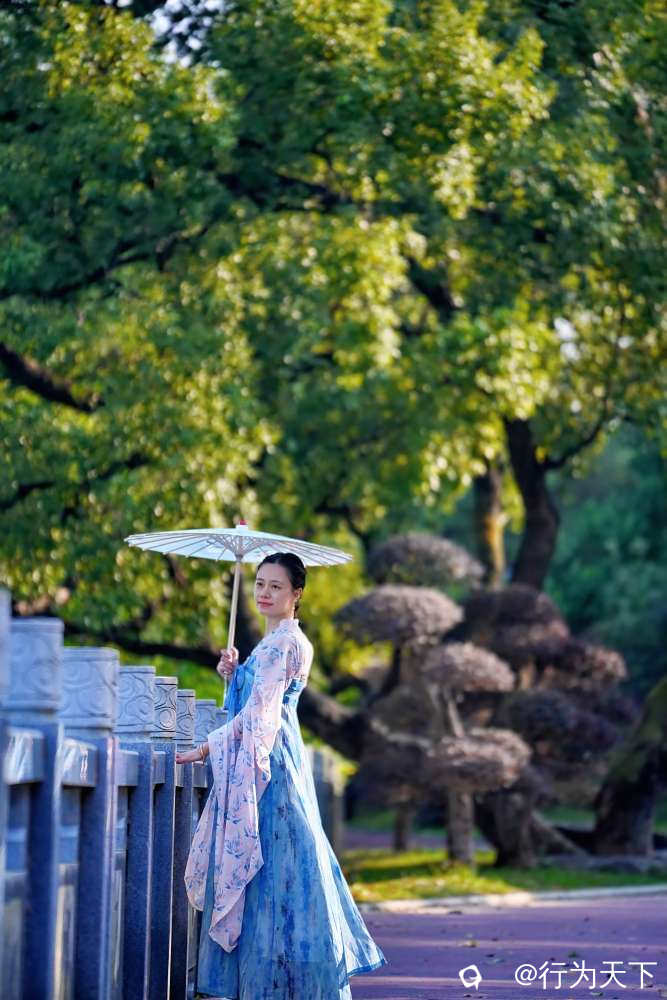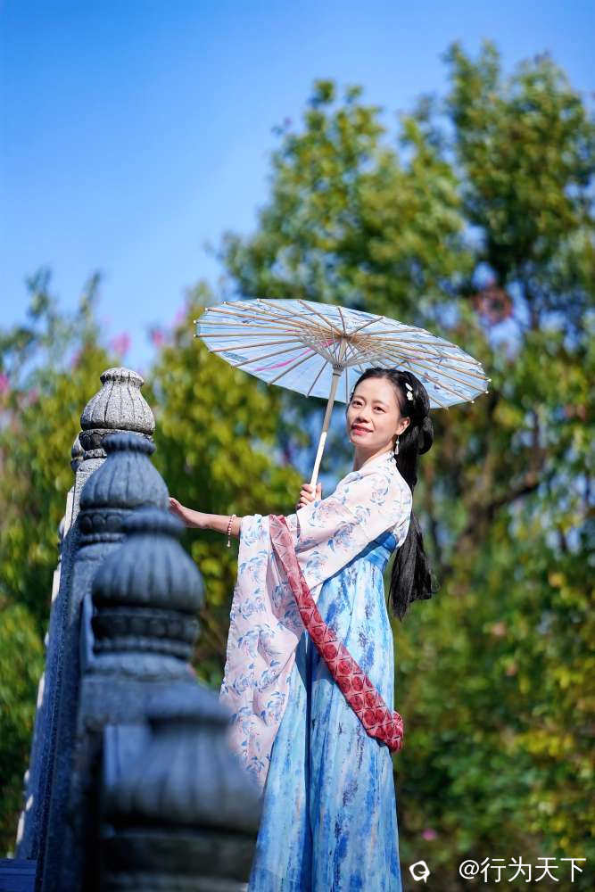 她们为这座公园注入了流动的元素——当衣袂飘过百年石阶,当环佩声回荡在古老廊桥,历史仿佛活了过来,是一种文化记忆的苏醒,是今人与古人跨越时空的默契对望。