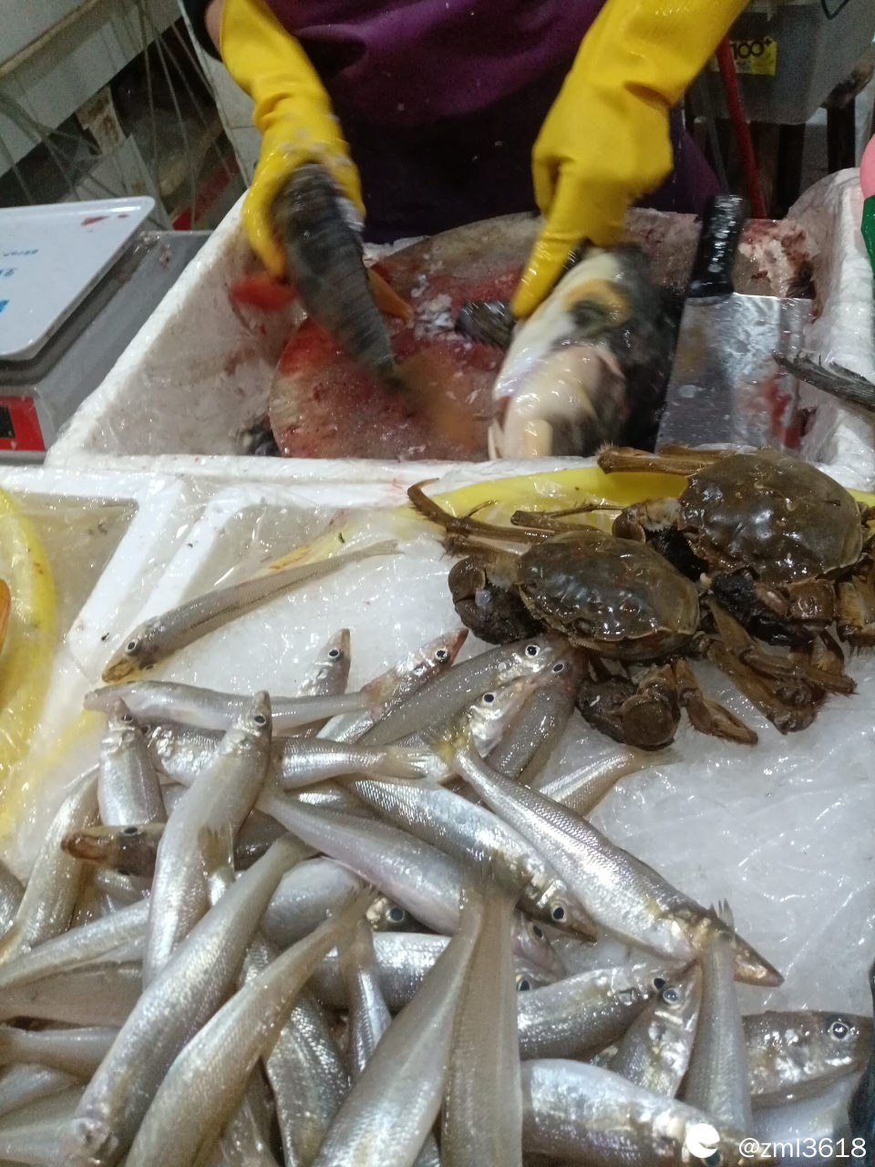 在小区门口超市里 ,有个渔船妹妹摆的海鱼摊,下楼走几分钟就可看得到,比买小菜还方便。(她出摊前,会在顾客群里发微信,发视频,告知今天鱼货。)