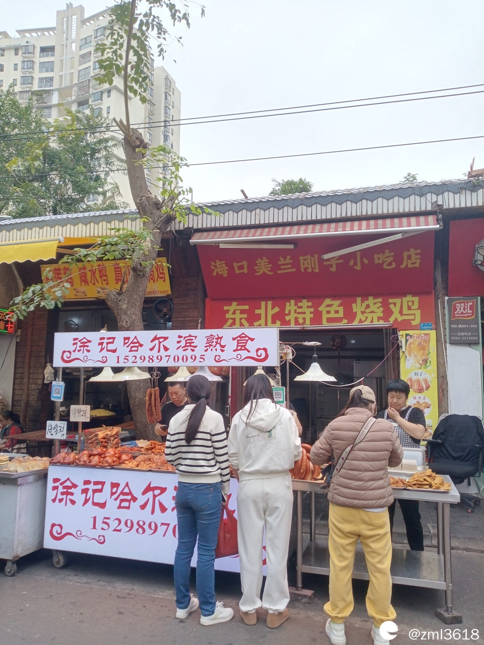 这条街的东北熟食摊特别多,卖烧鸡;卤鸡,卤猪耳朵;哈尔滨红肠,鸡骨架等等。大概率是其同乡来光顾吧。