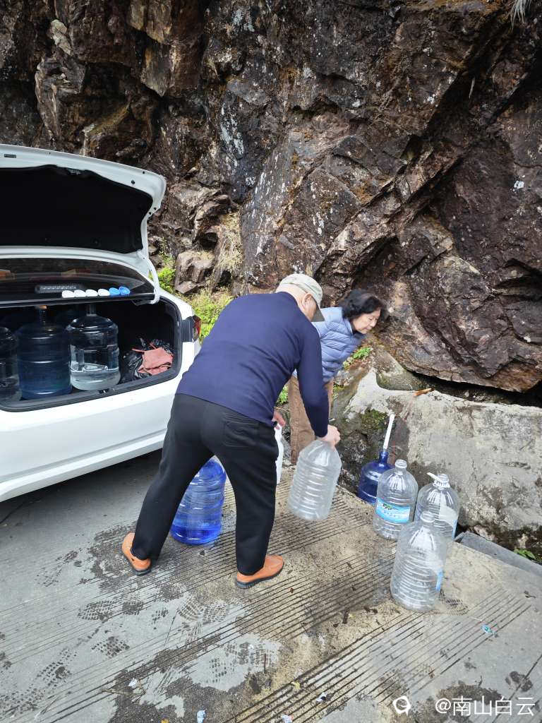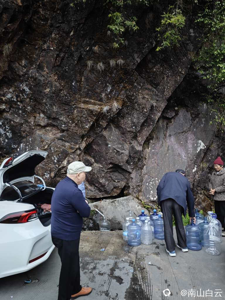 到了山区山泉水取水点,一对夫妻已经开始用桶装水。我看到有志同道合的朋友,很高兴。同他们聊天才知道,男的有八十岁了,早上五点钟开车从桂林七星区赶来临桂山区打山泉水。厉害,老当益壮,他提几十斤的水面不改色心不跳,而且装十几桶水。为这对老年生活伴侣点赞。