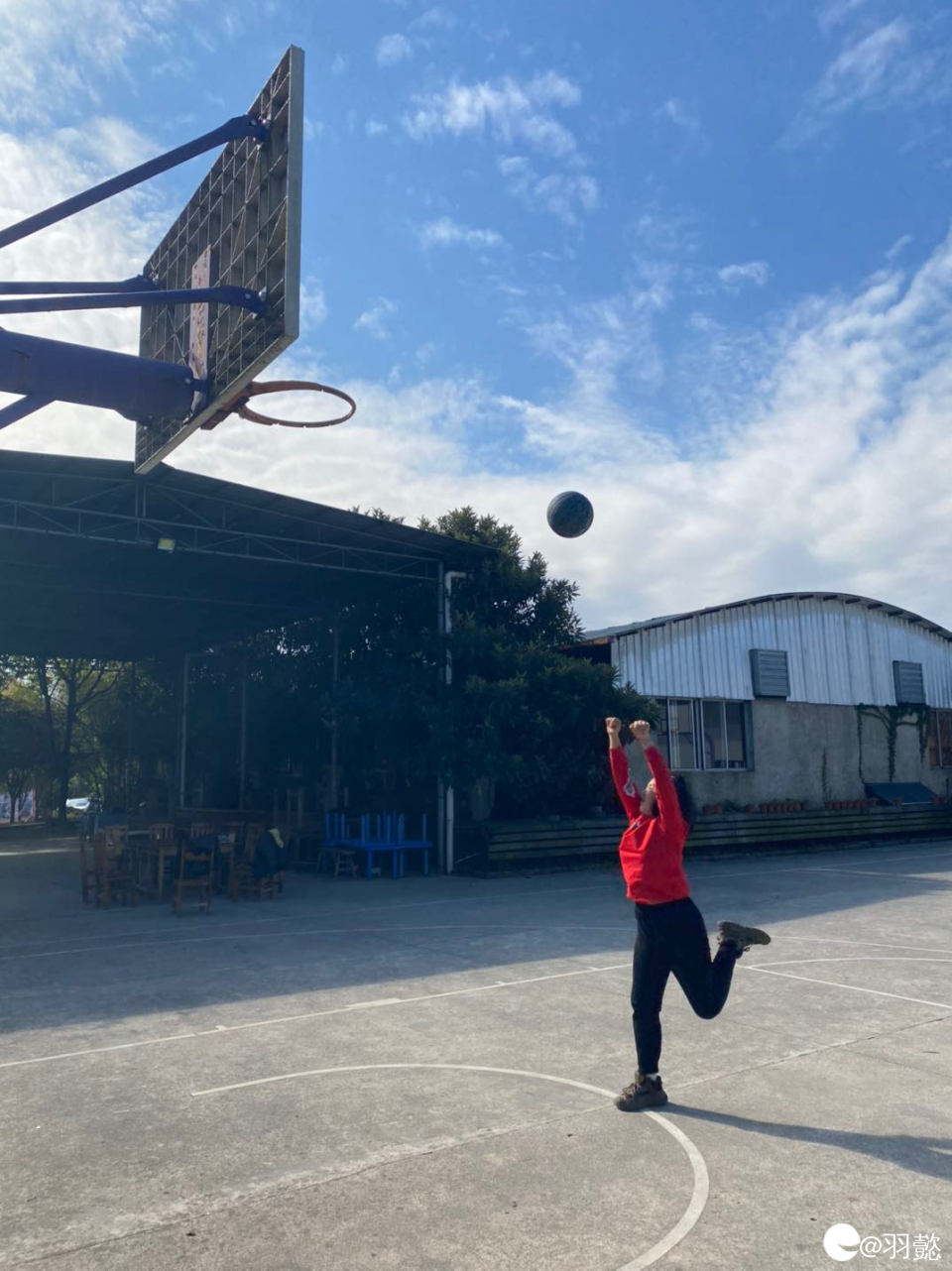 娃追着球跑、蹦着投篮,摔倒了也笑着爬起来~