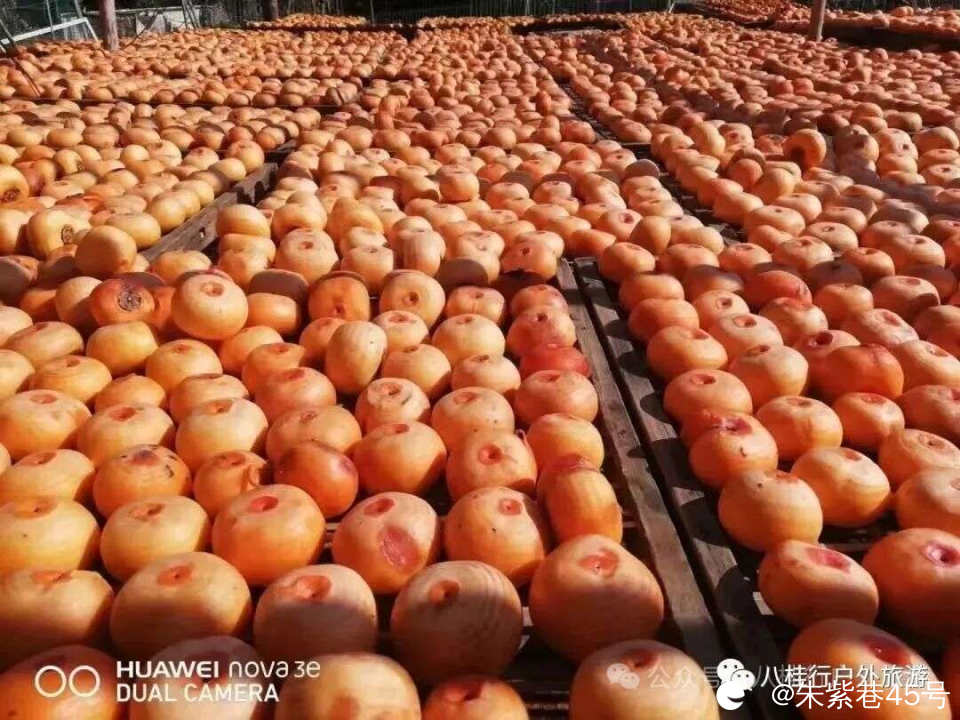 婺源晒秋,篁岭晒秋都非常具有秋日色彩,而在桂林平乐县大塘口村,这里家家户户晒柿子,比起晒秋,晒金灿灿红彤彤的柿子也毫不逊色,穿村而过是漫山遍野的柿子林,又大又红的柿子,在金秋十月,她是一年之中最美的季节。