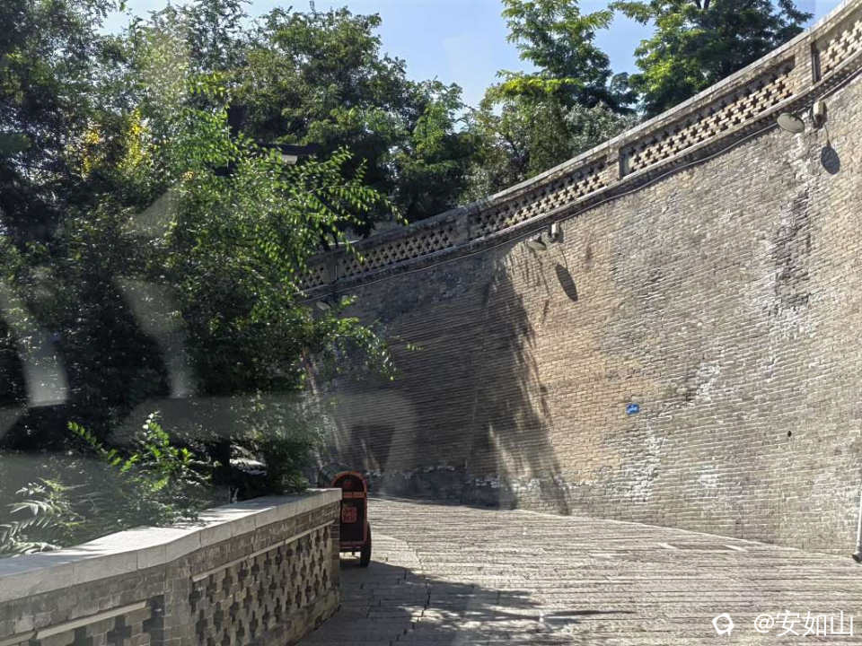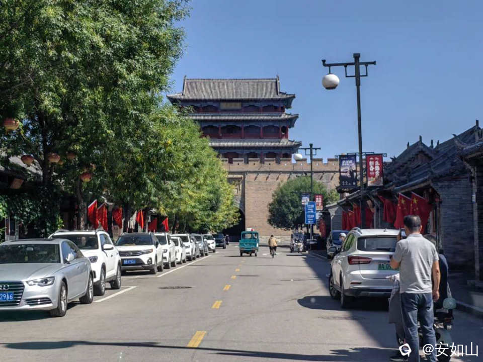 忻州市建城在1800年前的东汉,忻州古城四周有高大城墙合围,东南西北都有城门,这里历史上是重要的兵家必争之战略要地,四个城门都曾因战火遭毁灭,历代多次重建,2016年重修成现在模样,高大霸气,古城里停车好难,我好不容易找到一处街边没划线的停车位,罚不罚款我心中没底,但心中难免惶恐,原本想去老街吃饭的,可是怕罚单,所以逛老城也变得马虎,我坐上古城的游览车,绕古城游览线停停走走,不足一小时,粗略的逛完老城。